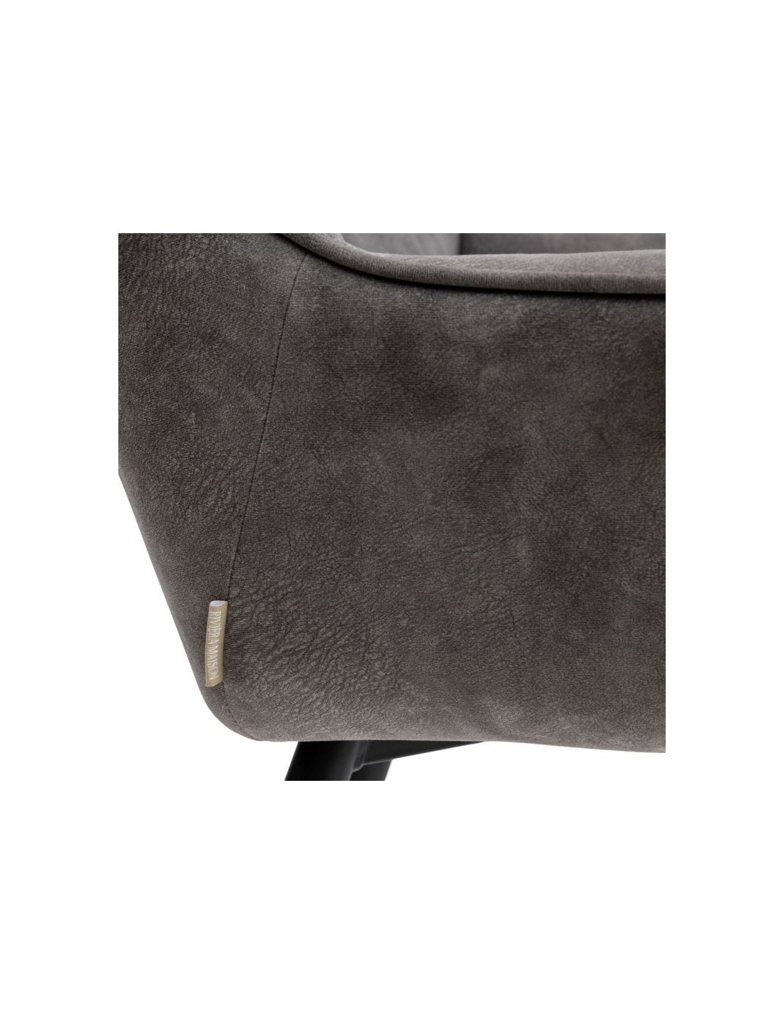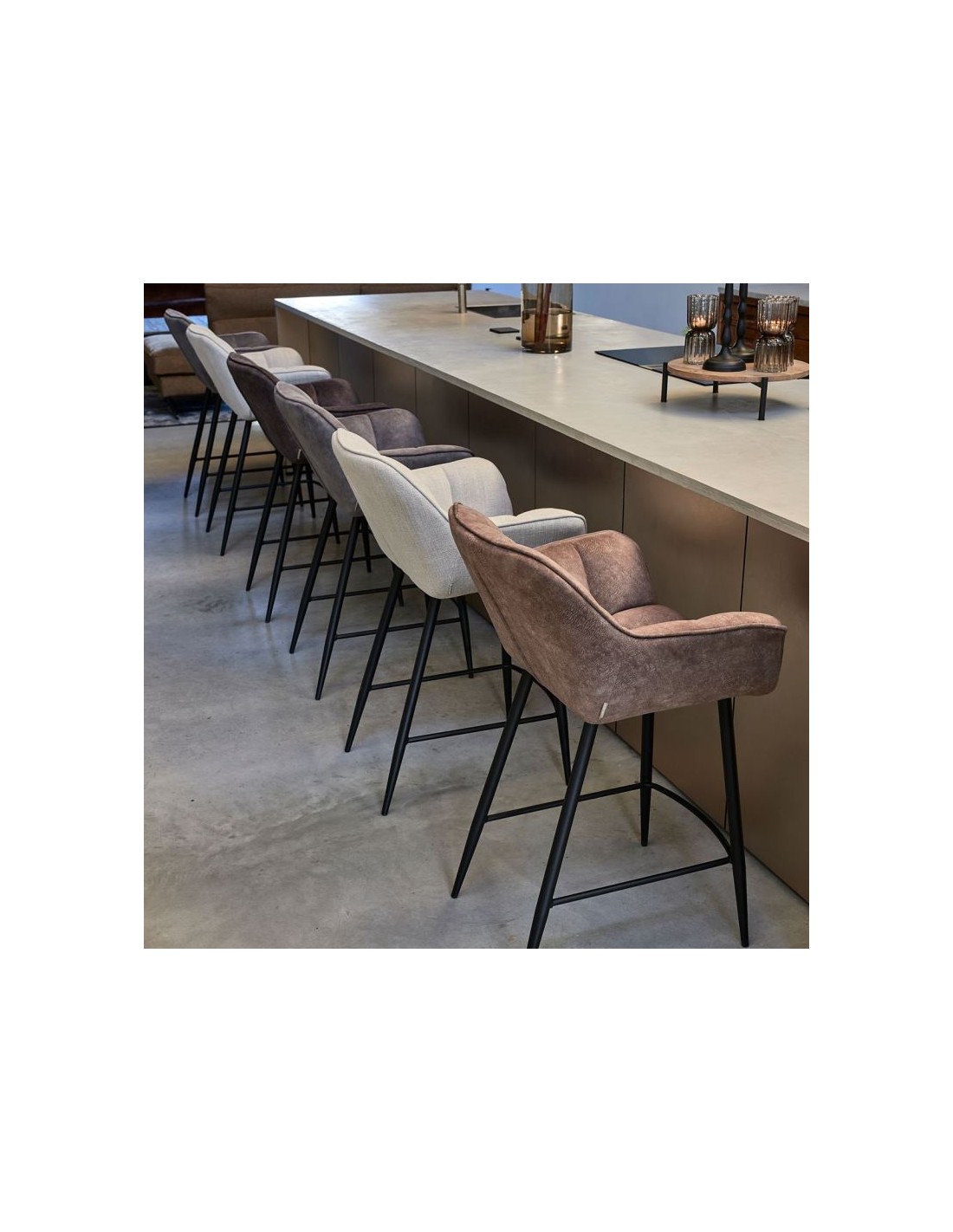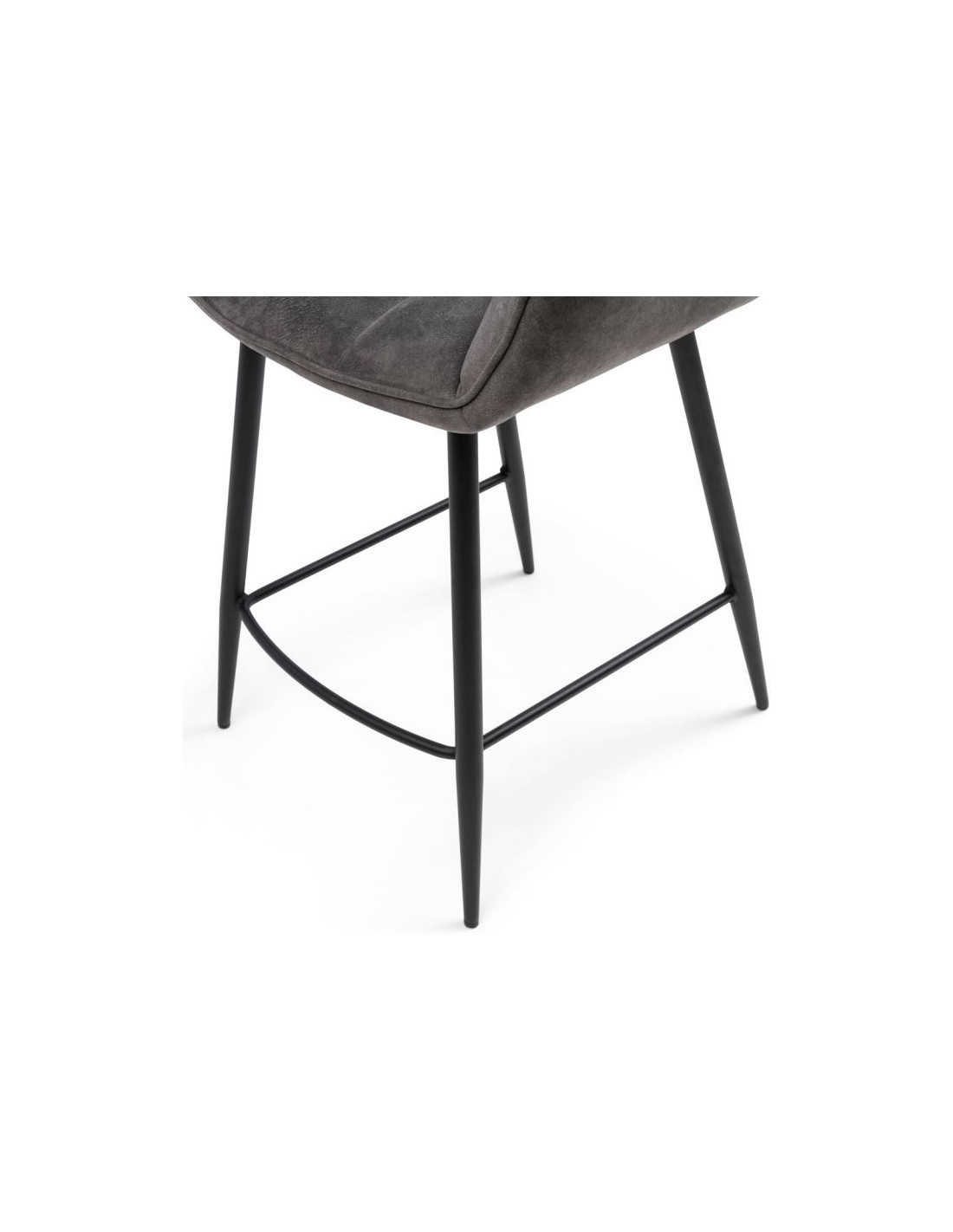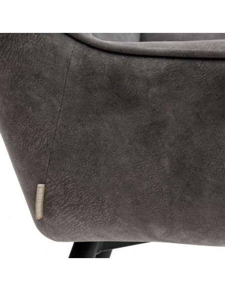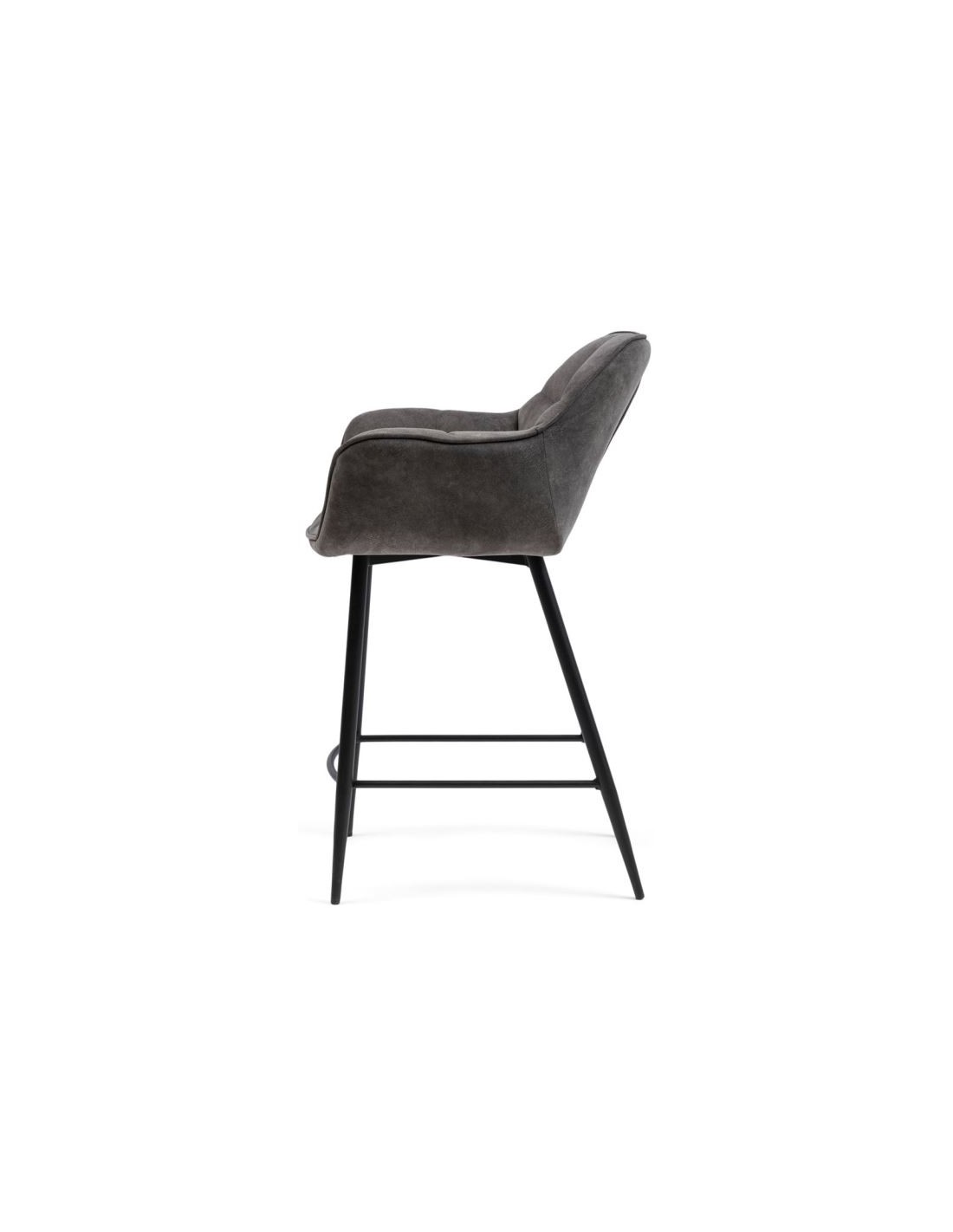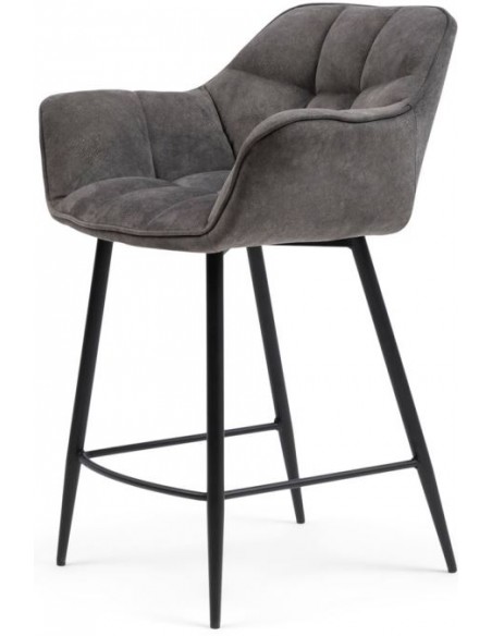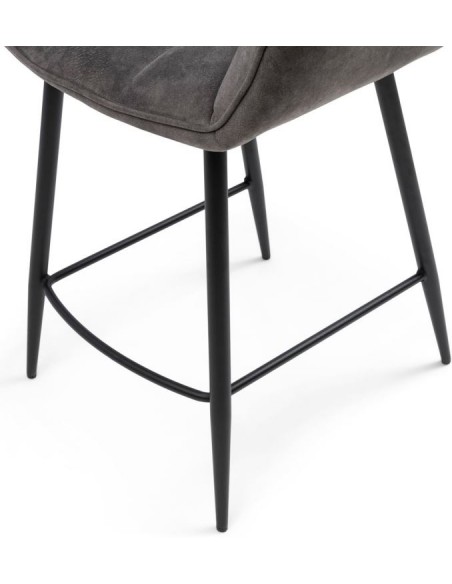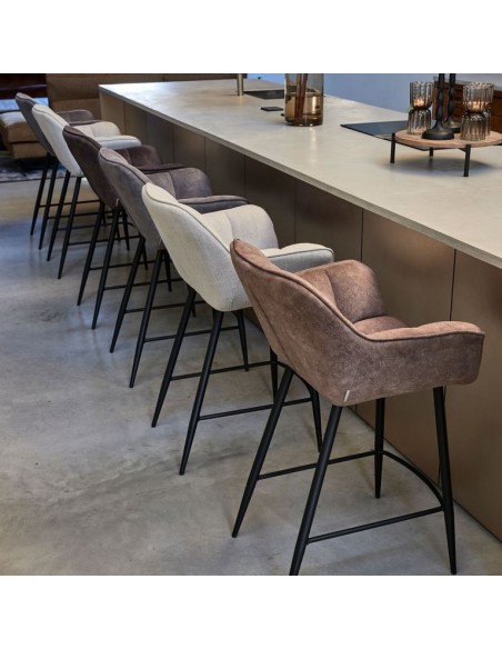 Riviera Maison barstol i et design af elefantgrå polyester og sortlakeret metal. Stolen måler 96,5 cm i højden over ryggen og 67 cm i siddehøjde.