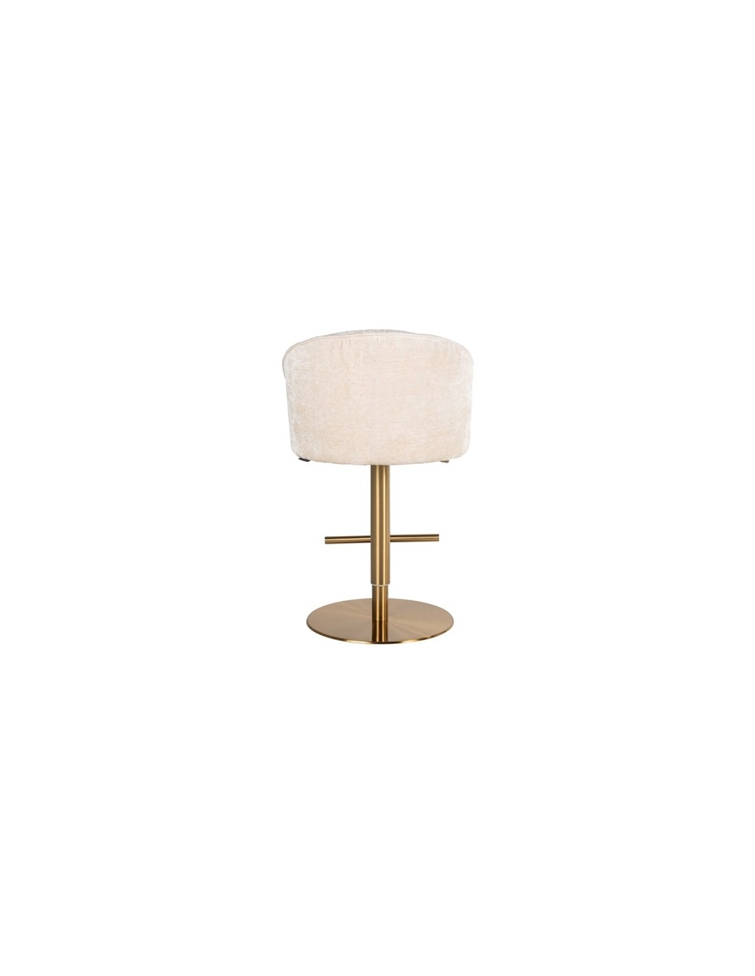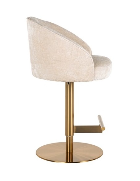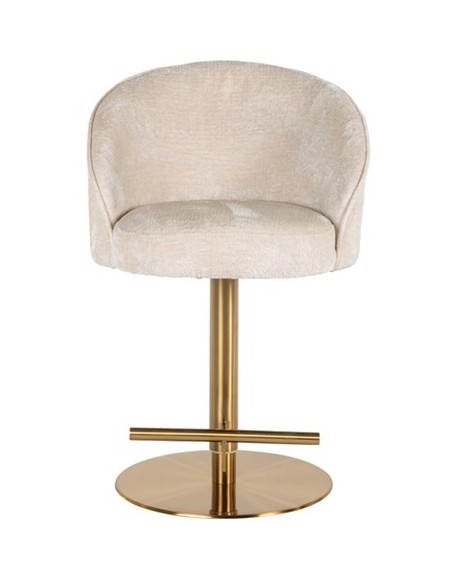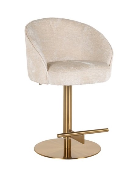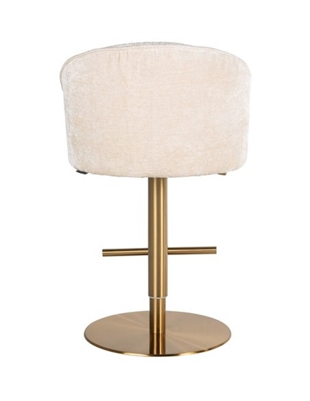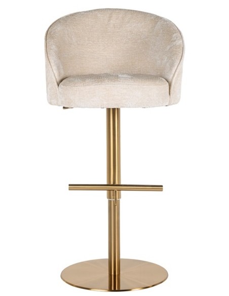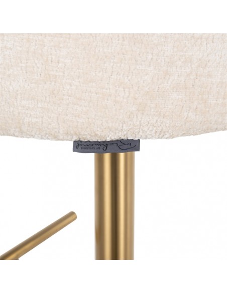 Barstol i et design fra hollandske Richmond Interiors. Stolen er fremstillet i beigehvid chenille ruflet og med stel i børstet messinglakeret stål. Stolen måler 86 - 112 cm i højden over ryggen og 57 x 54 cm i bredde og dybde.
