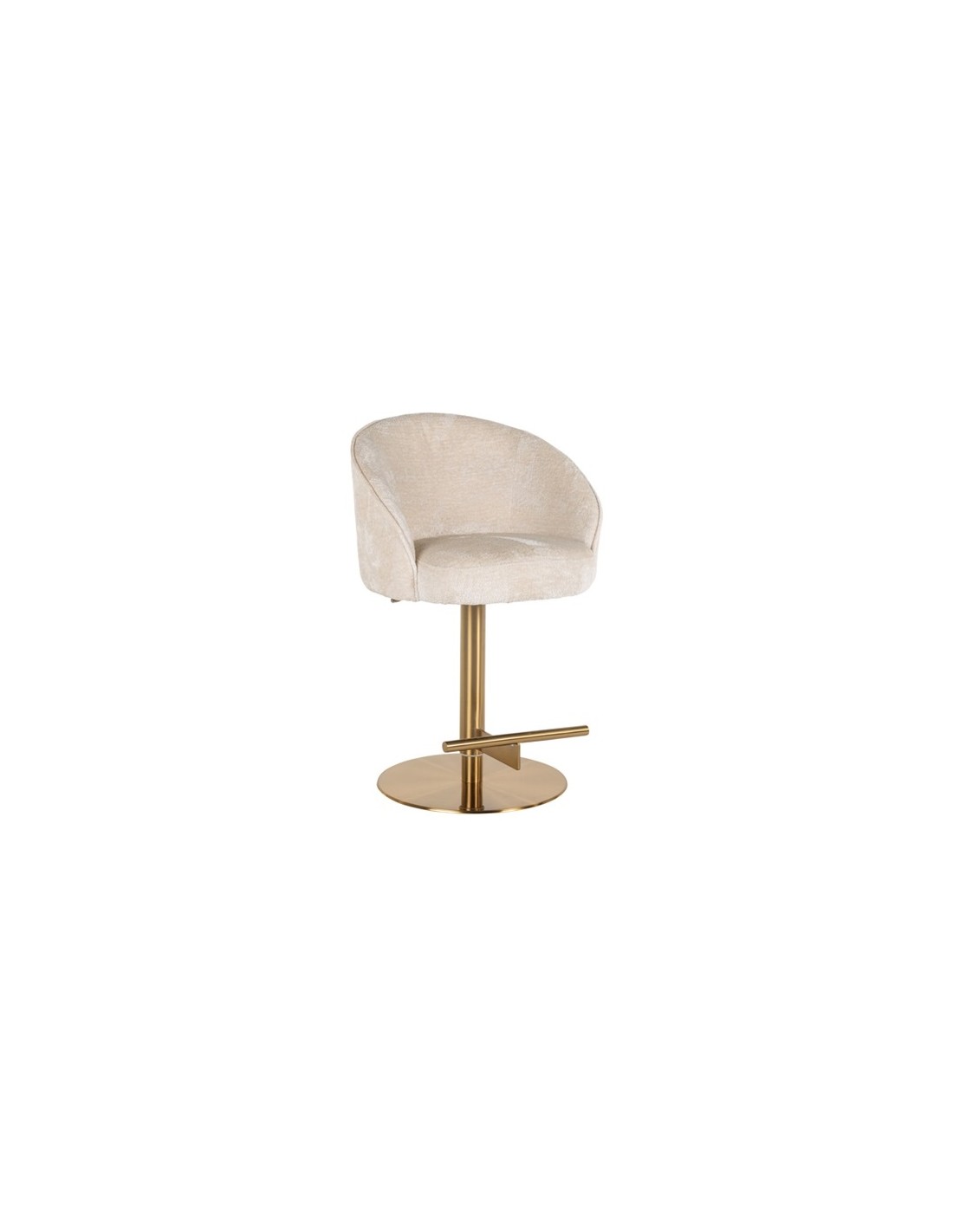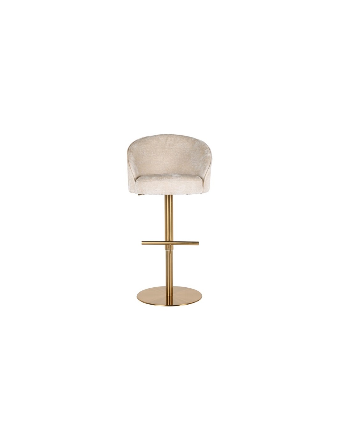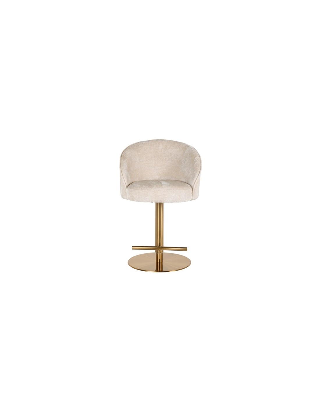 Barstol i et design fra hollandske Richmond Interiors. Stolen er fremstillet i beigehvid chenille ruflet og med stel i børstet messinglakeret stål. Stolen måler 86 - 112 cm i højden over ryggen og 57 x 54 cm i bredde og dybde.