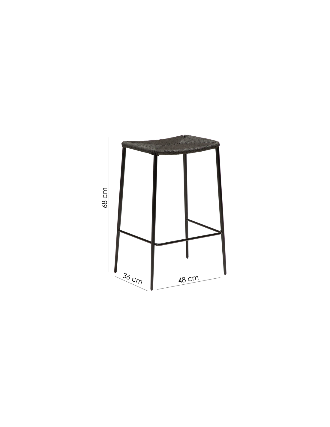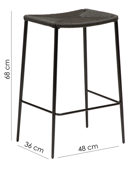 Stiletto barstol i stål og reb H68 cm - Sort