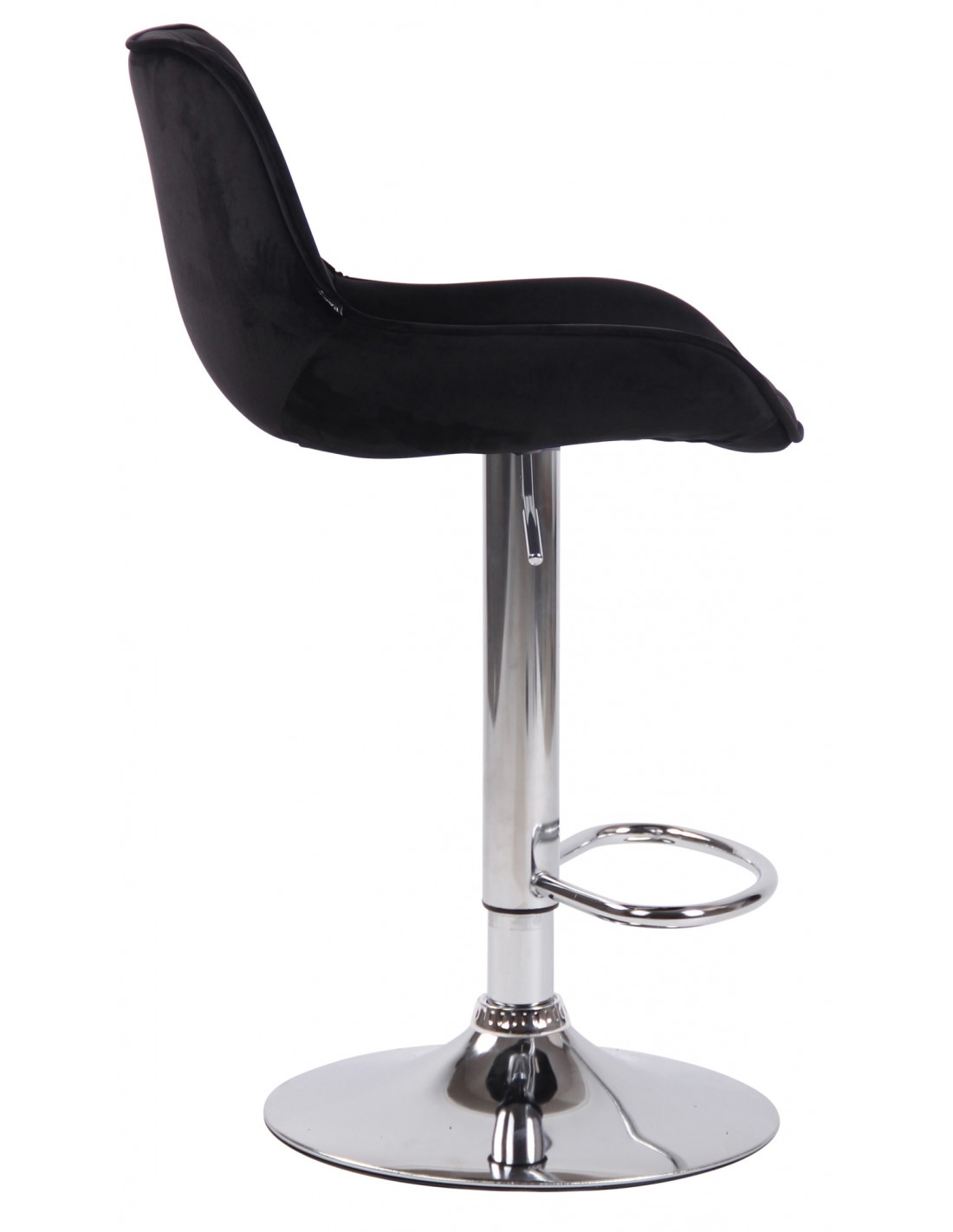 Barstol udført i et moderne og komfortabelt design, fremstillet med sæde i polstret sort velour og stel i kromlakeret metal. Barstolen måler 86 - 108 cm i højden over ryggen og med en siddehøjde på 60 - 82 cm.