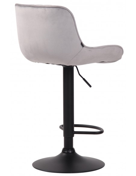 Barstol udført i et moderne og komfortabelt design, fremstillet med sæde i polstret lysegrå velour og stel i sortlakeret metal. Barstolen måler 86 - 108 cm i højden over ryggen og med en siddehøjde på 60 - 82 cm.