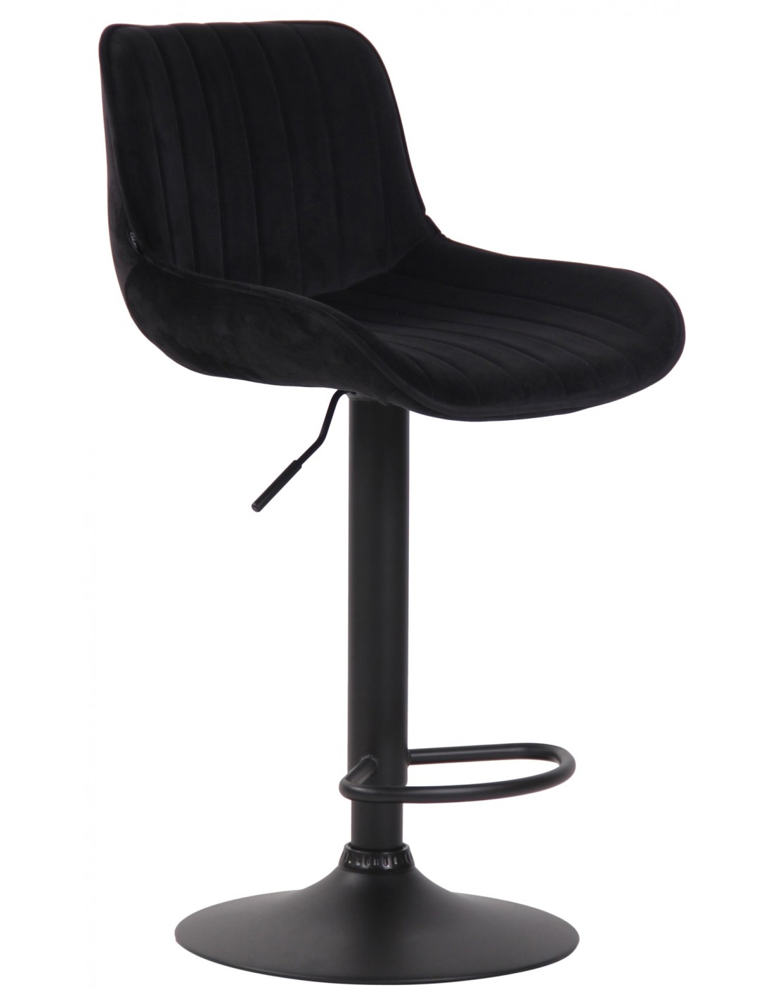 Barstol udført i et moderne og komfortabelt design, fremstillet med sæde i polstret sort velour og stel i sortlakeret metal. Barstolen måler 86 - 108 cm i højden over ryggen og med en siddehøjde på 60 - 82 cm.