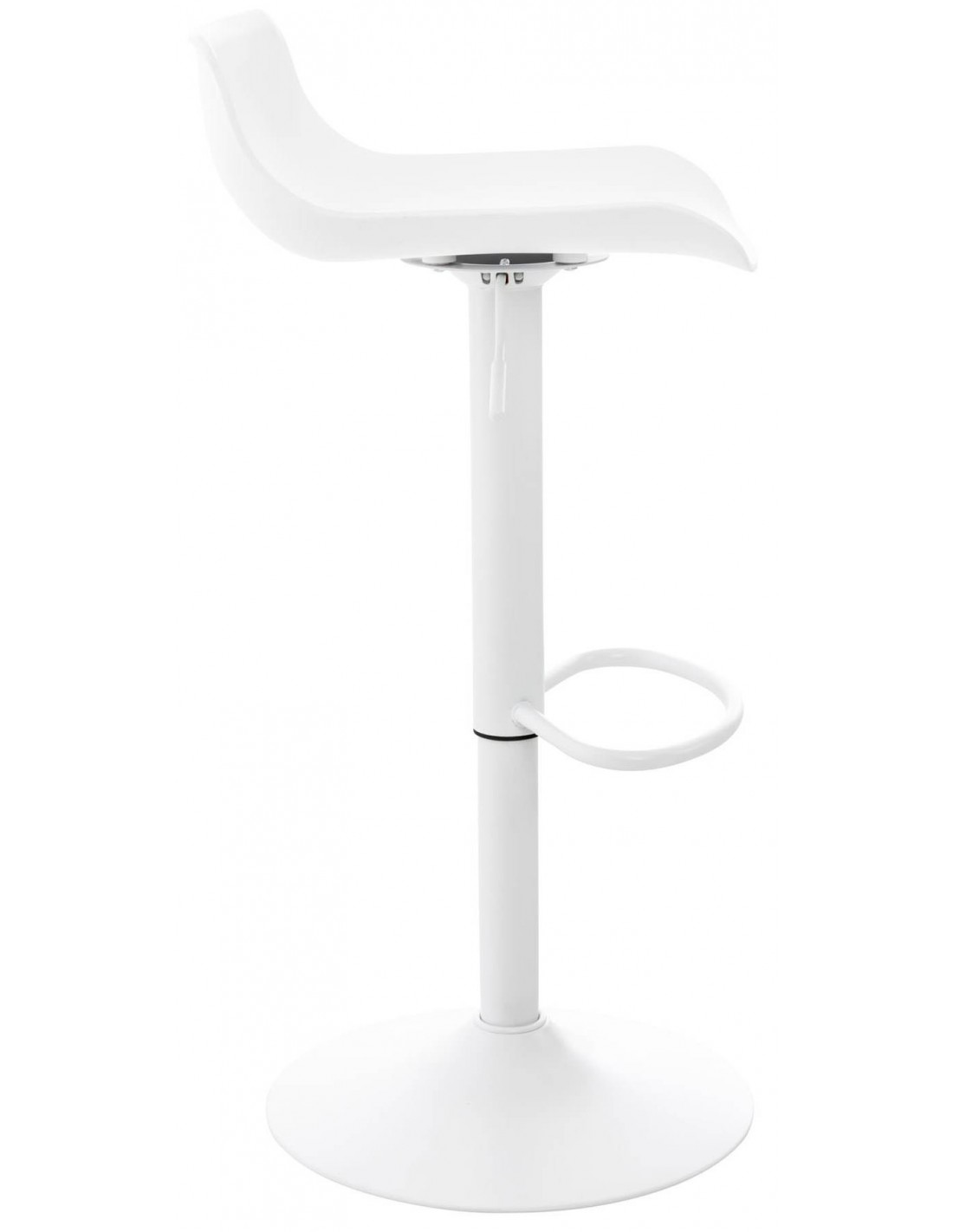Barstol udført i et moderne design, fremstillet med sæde i polypropylen og stel i hvidlakeret metal. Barstolen måler 75 - 96 cm i højden over ryggen og med en siddehøjde på 57 - 78 cm.