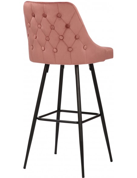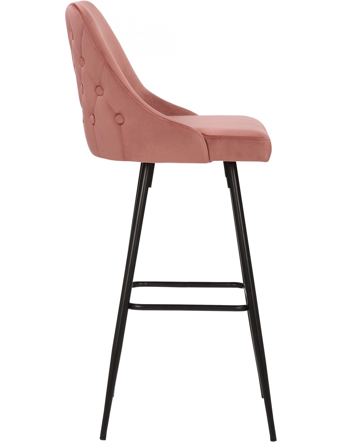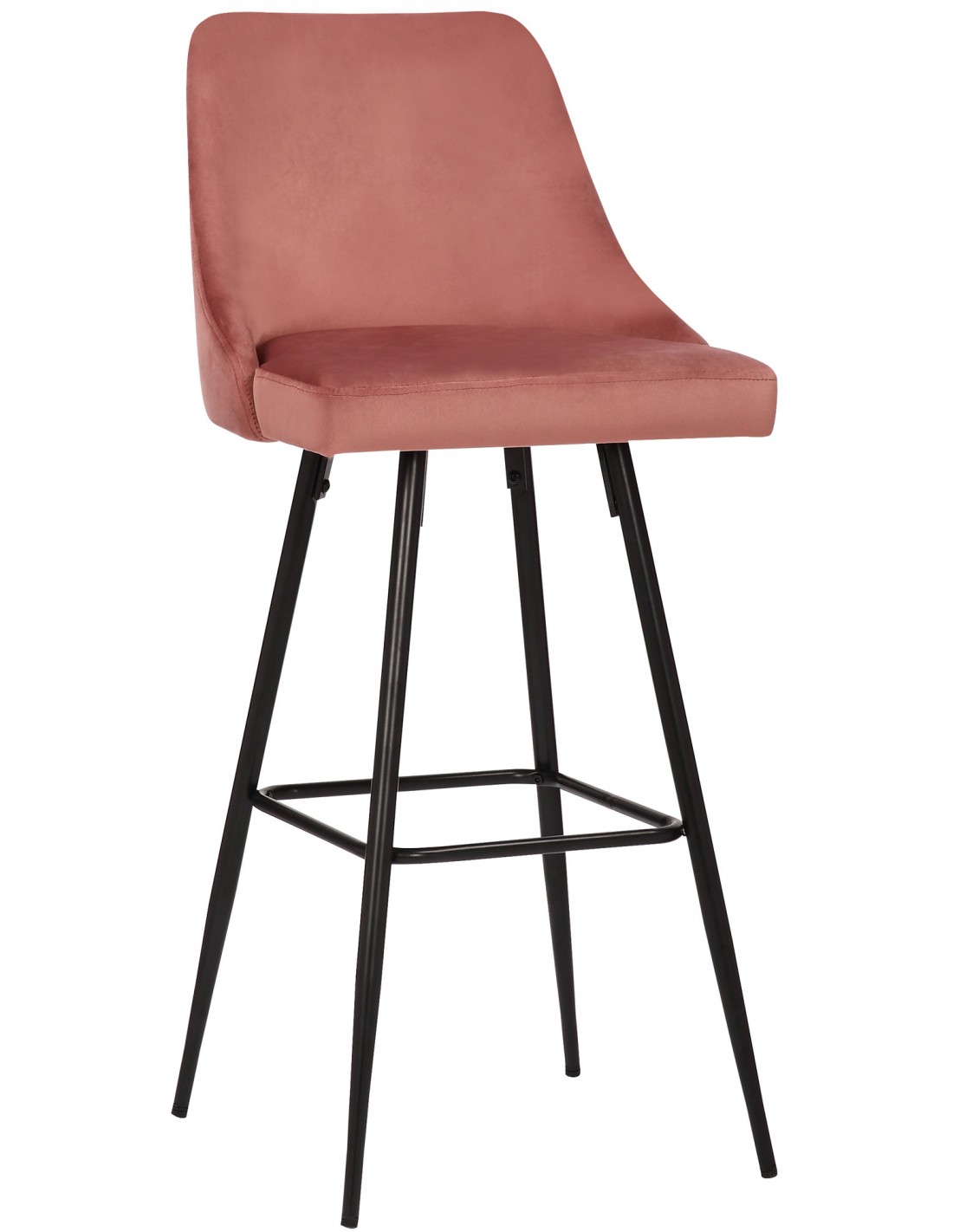 Barstol udført i et moderne og komfortabelt design, fremstillet med sæde i polstret pink velour og stel i sortlakeret metal. Barstolen måler 108 cm i højden over ryggen og med en siddehøjde på 78 cm.