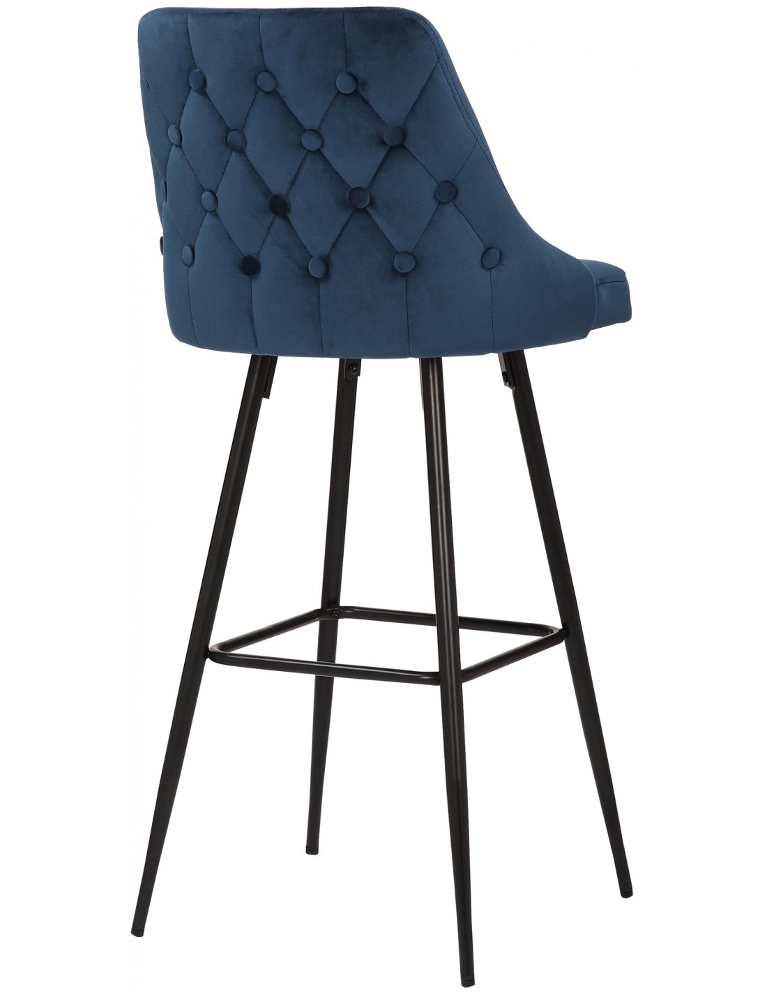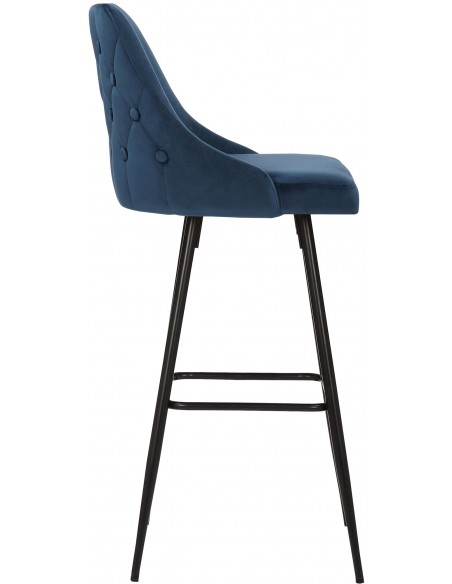 Barstol udført i et moderne og komfortabelt design, fremstillet med sæde i polstret blå velour og stel i sortlakeret metal. Barstolen måler 108 cm i højden over ryggen og med en siddehøjde på 78 cm.