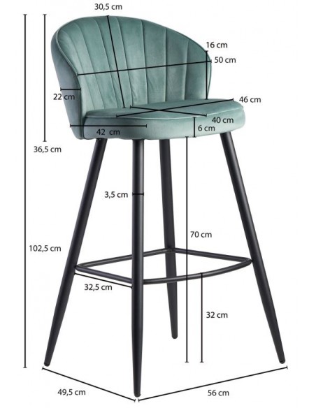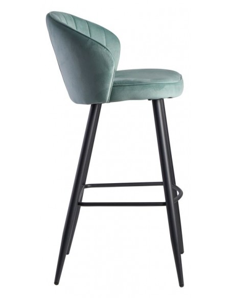 Barstol i metal og velour H102,5 cm - Sort/Grøn