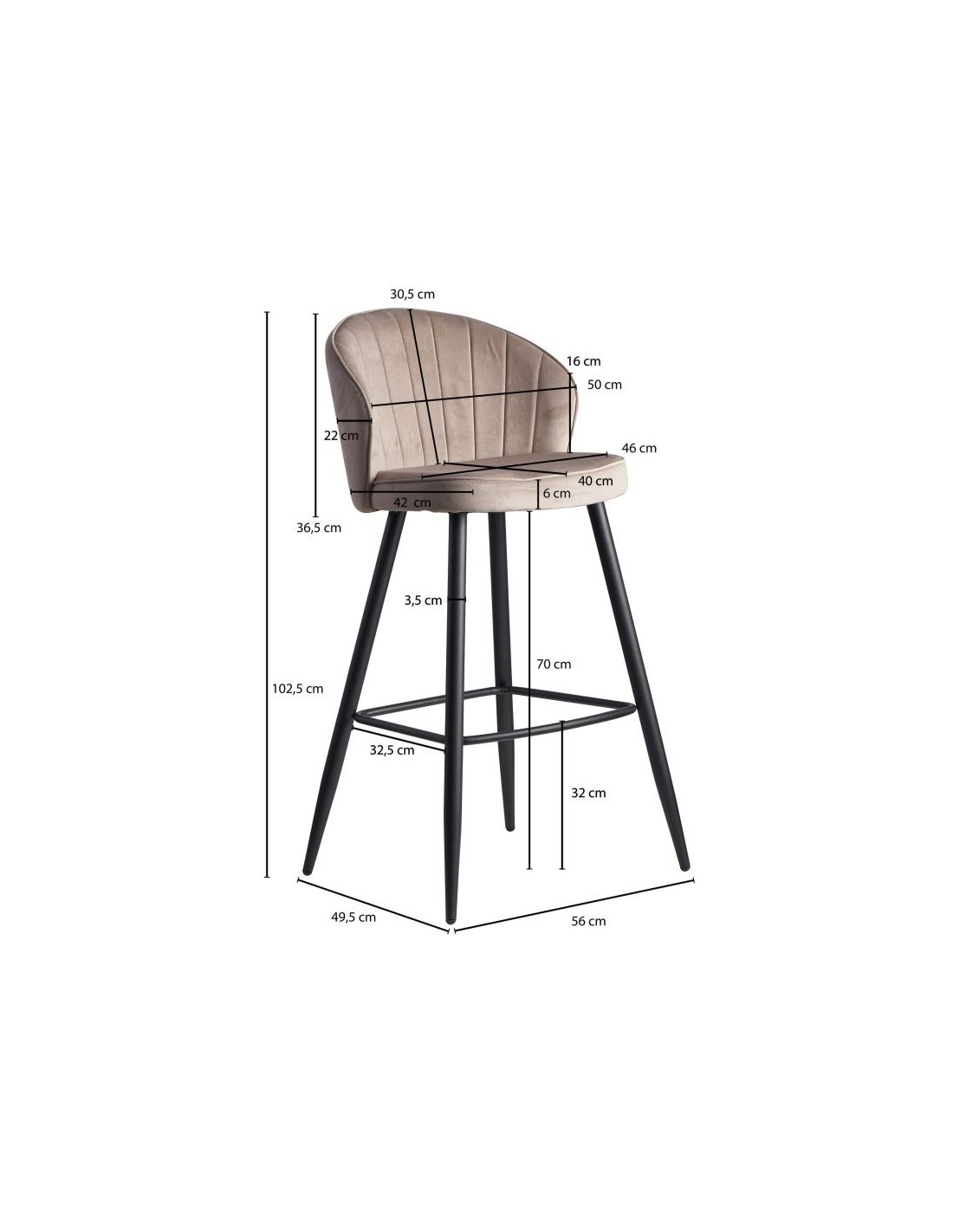 Barstol i metal og velour H102,5 cm - Sort/Beige