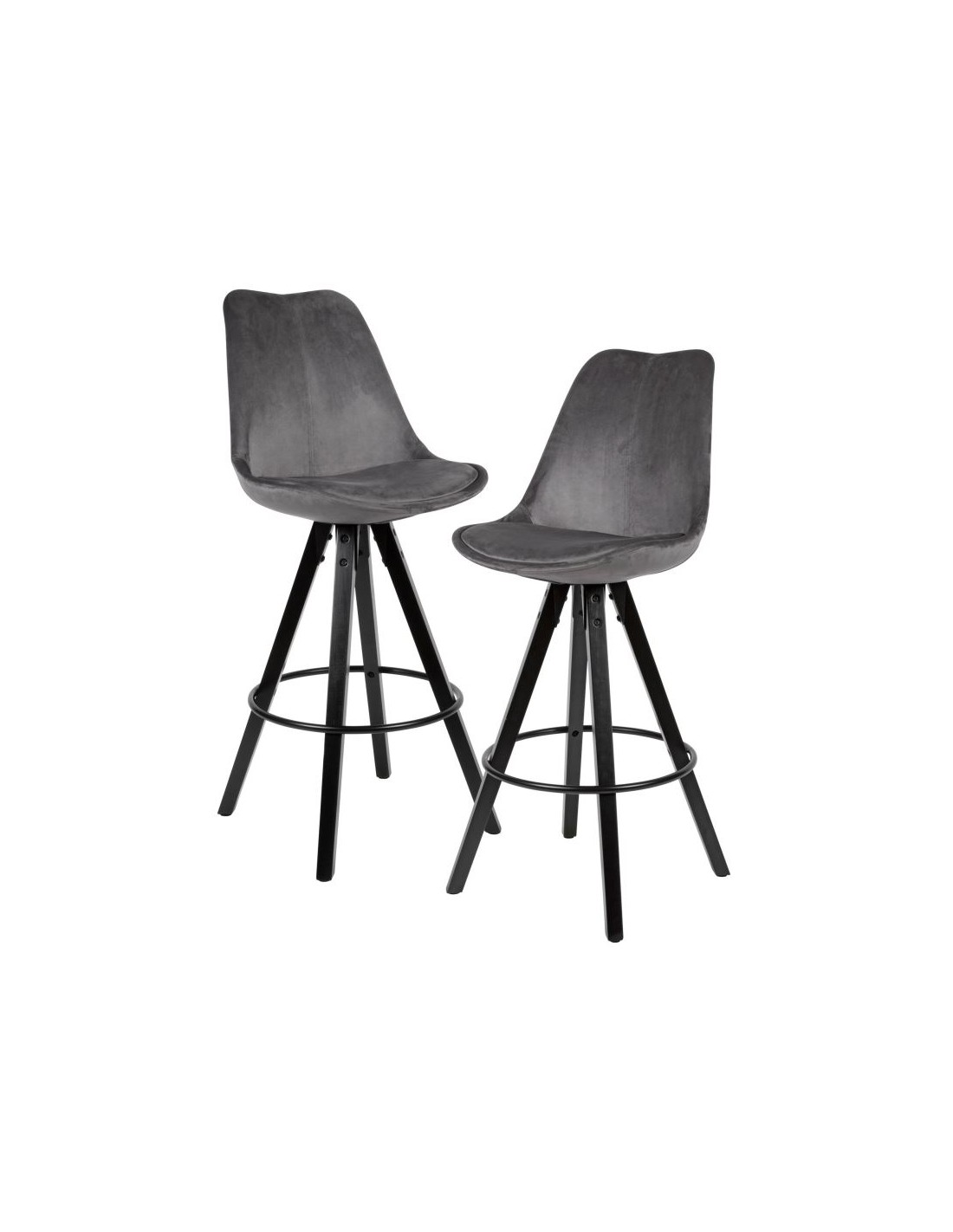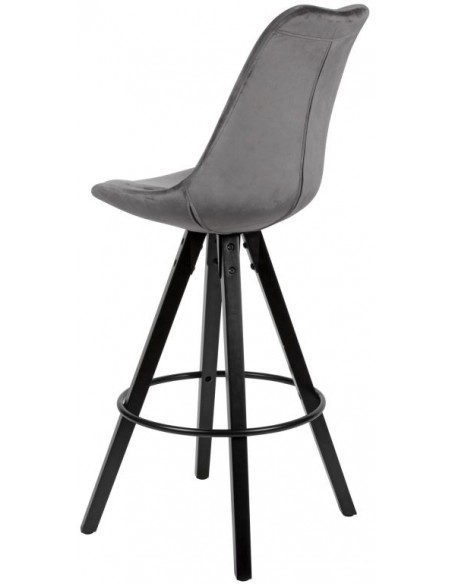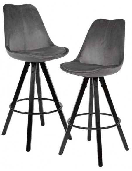 2 x Barstole i træ og velour H113 cm - Sort/Grå