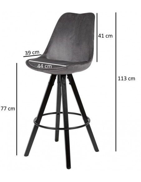 Sæt med 2 barstole fremstillet i et design af sortlakeret træ og metal og grå velour. Barstolene måler 113 cm i højden over ryggen og med en siddehøjde på 77 cm.