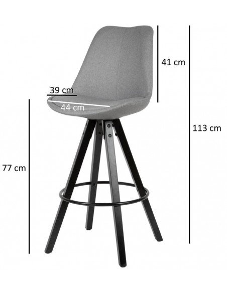 Sæt med 2 barstole fremstillet i et design af sortlakeret træ og metal og grå polyester. Barstolene måler 113 cm i højden over ryggen og med en siddehøjde på 77 cm.