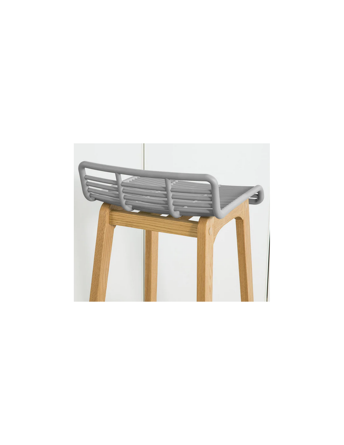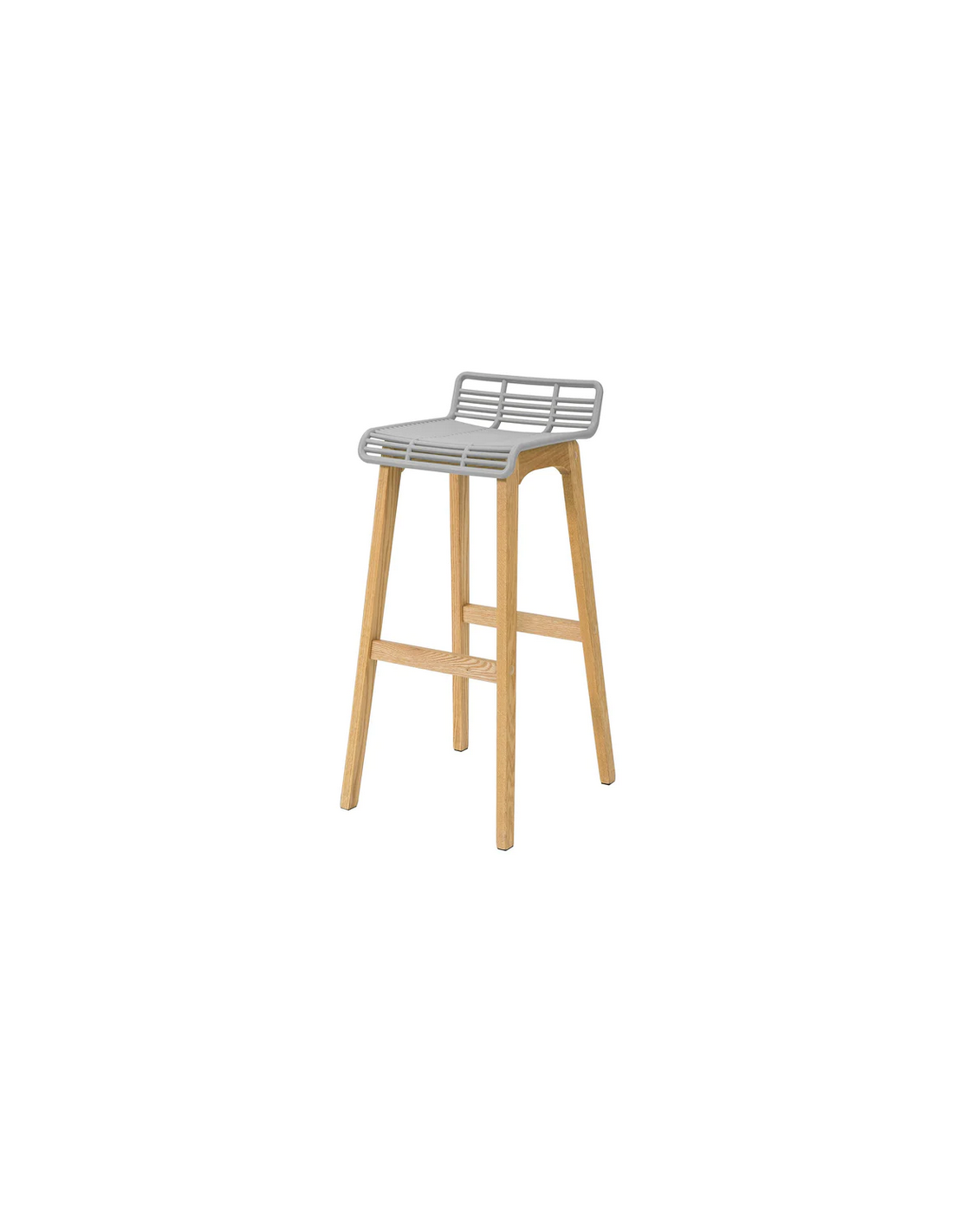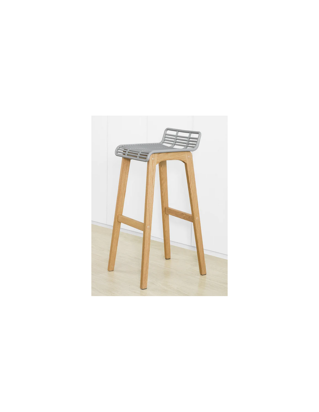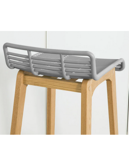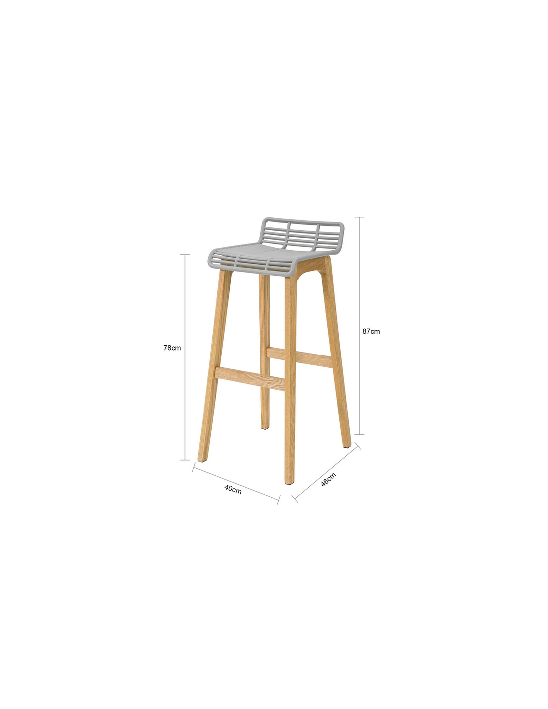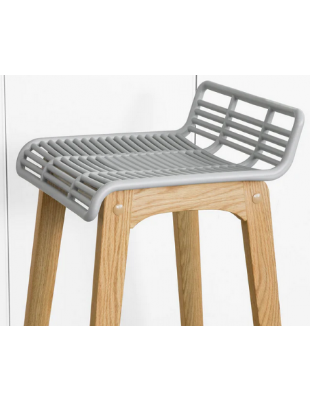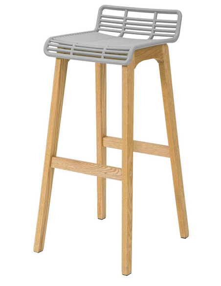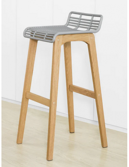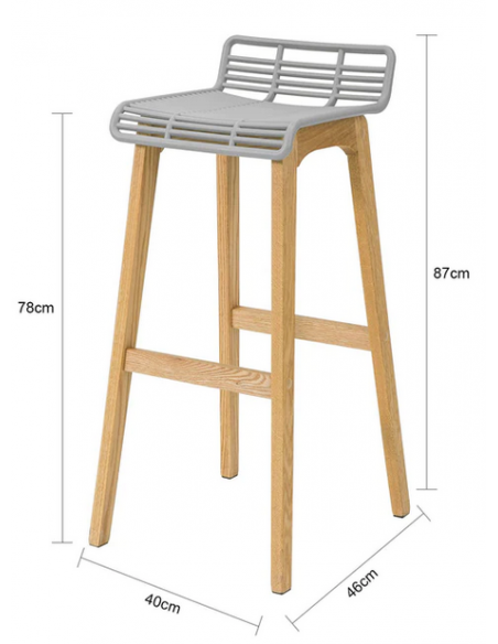 Barstol udført i et design af naturfarvet træ og grå ABS kunststof. Barstolen måler 87 cm i højden over ryggen og 40 x 46 cm i bredde og dybde. Siddehøjden er 78 cm.
