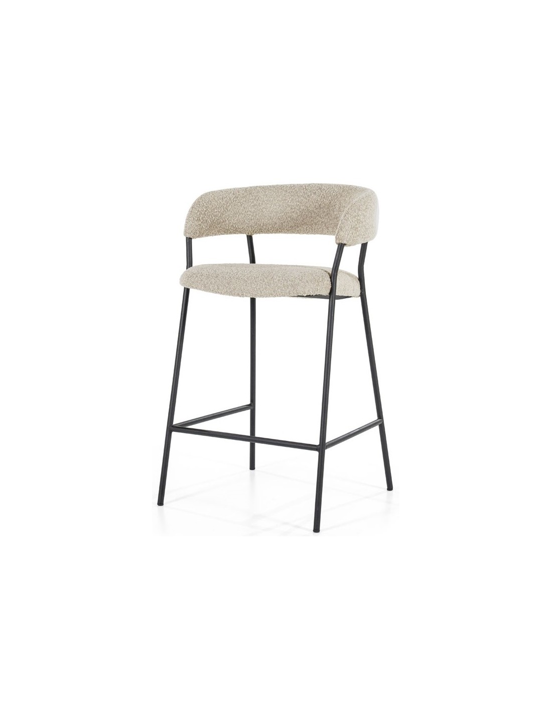 Luca barstol udført i et design af sortlakeret metal og taupefarvet bouclé polyester. Barstolen måler 90 cm i højden over ryggen og 67 cm i siddehøjde.