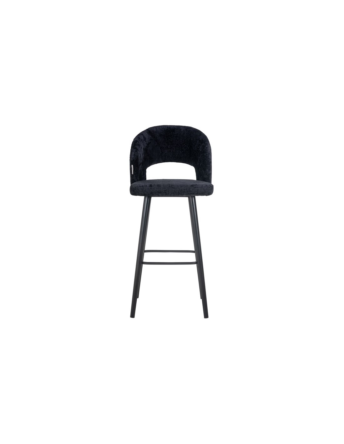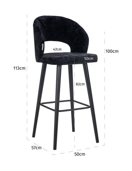Barstol i et design fra hollandske Richmond Interiors. Stolen er fremstillet i sortlakeret træ og sort chenille polyester. Stolen måler 113 cm i højden over ryggen og med en siddehøjde på 82 cm.