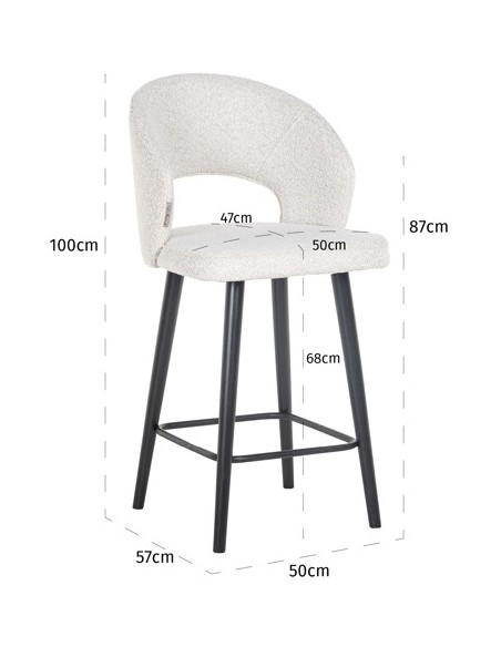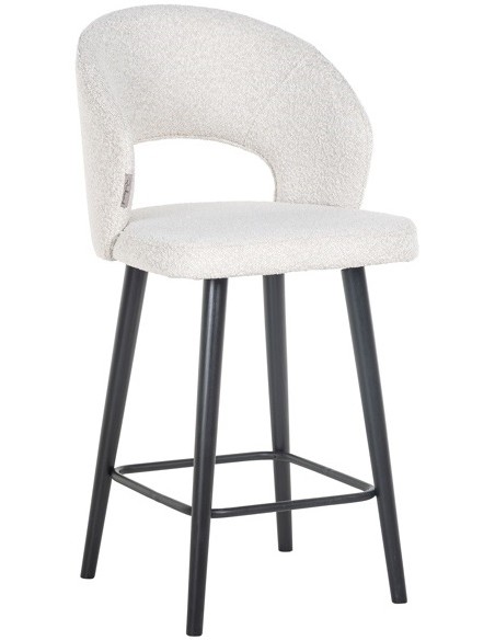 Barstol i et design fra hollandske Richmond Interiors. Stolen er fremstillet i sortlakeret træ og hvid bouclé polyester. Stolen måler 100 cm i højden over ryggen og med en siddehøjde på 68 cm.