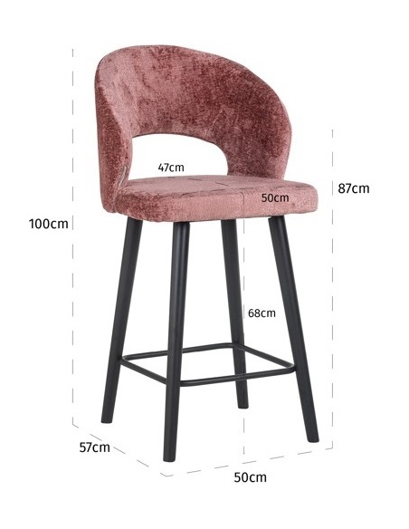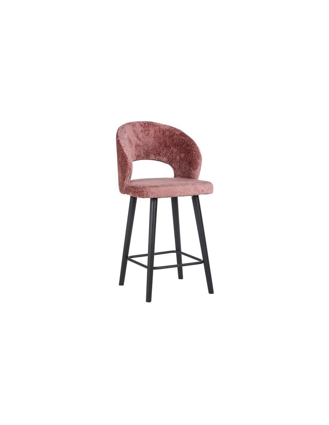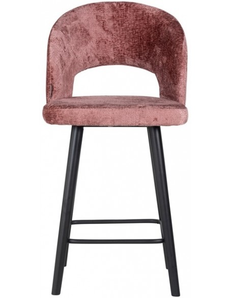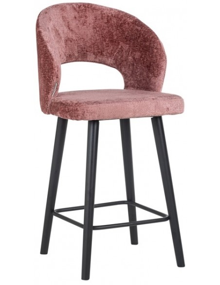 Savoy barstol i træ og chenille H100 cm - Sort/Rosa