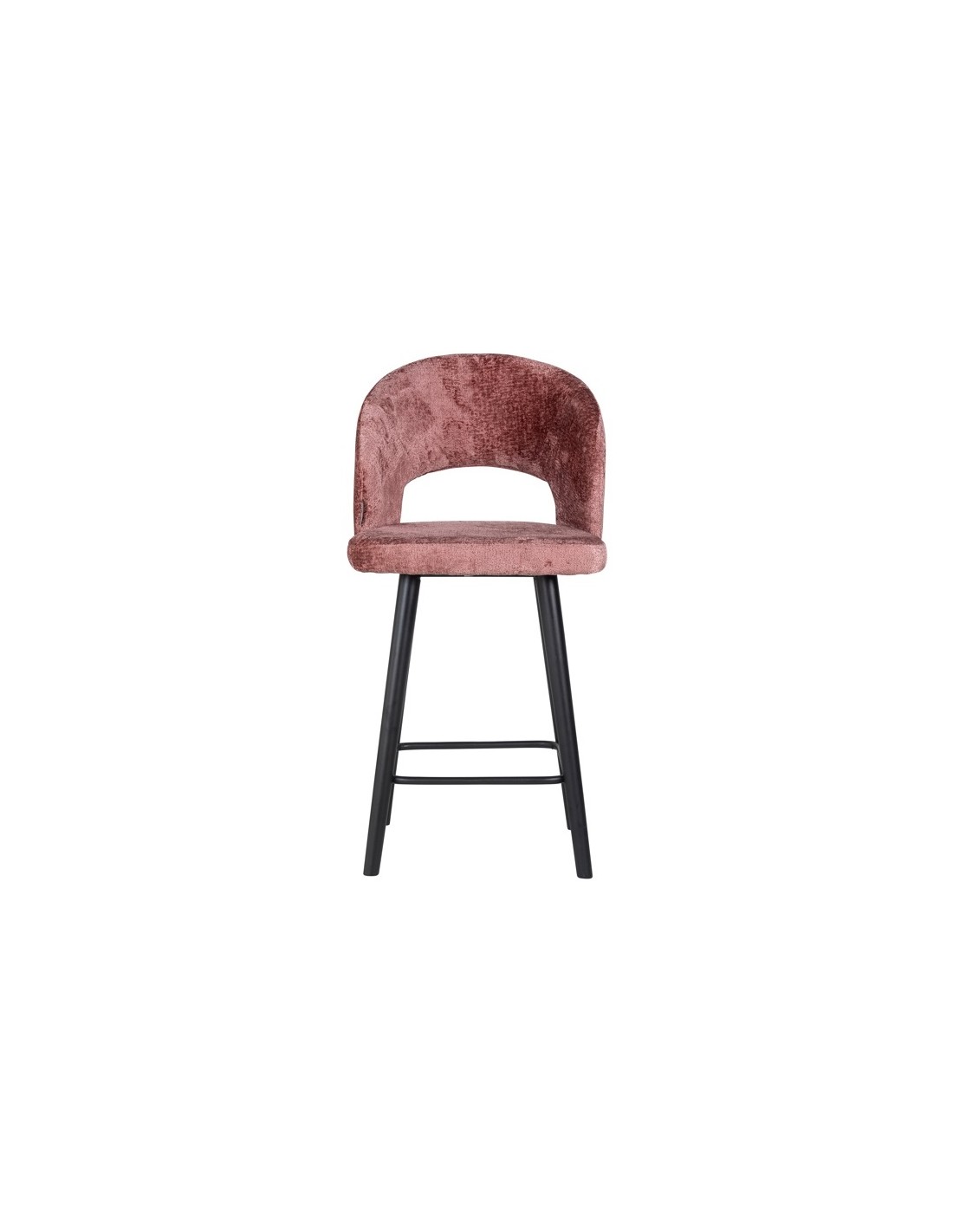 Barstol i et design fra hollandske Richmond Interiors. Stolen er fremstillet i sortlakeret træ og rosa chenille polyester. Stolen måler 100 cm i højden over ryggen og med en siddehøjde på 68 cm.