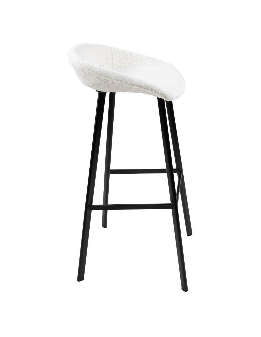 Barstol udført i et design af sortlakeret metal og hvid teddy polyester. Stolen måler 87 cm i højden over ryggen og 80 cm i siddehøjde.