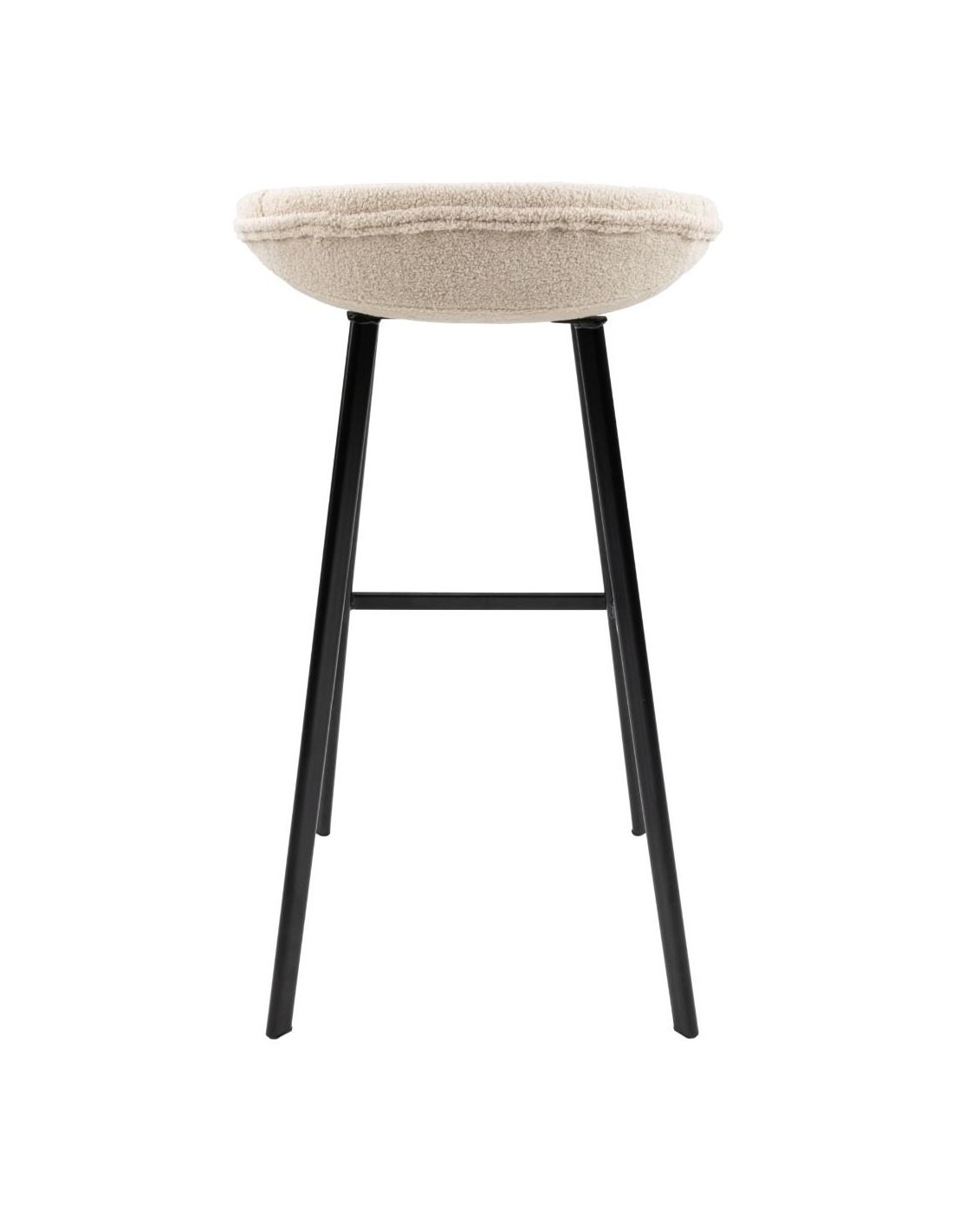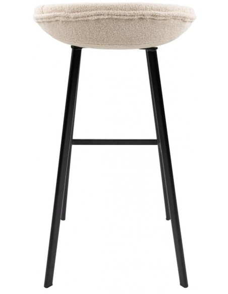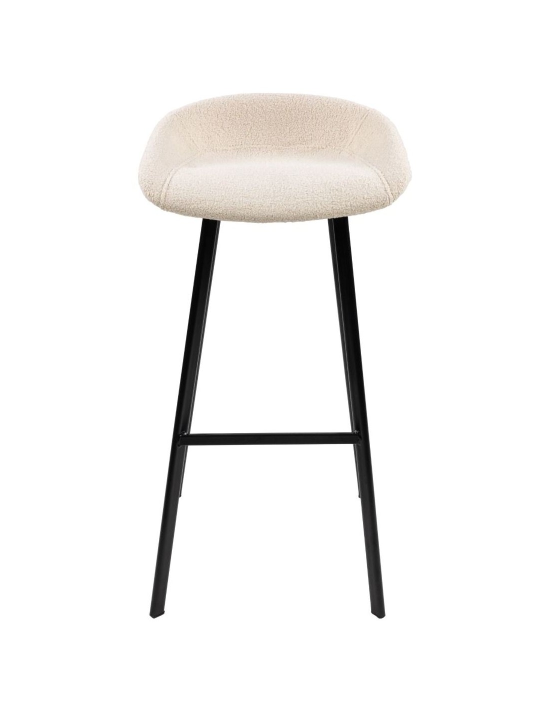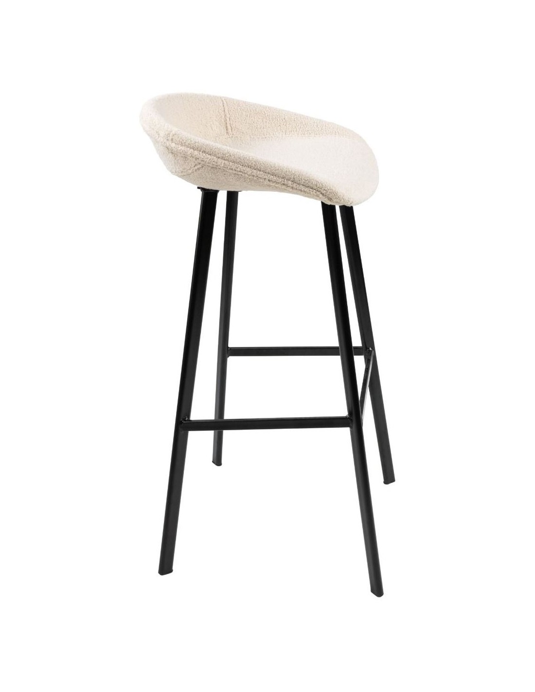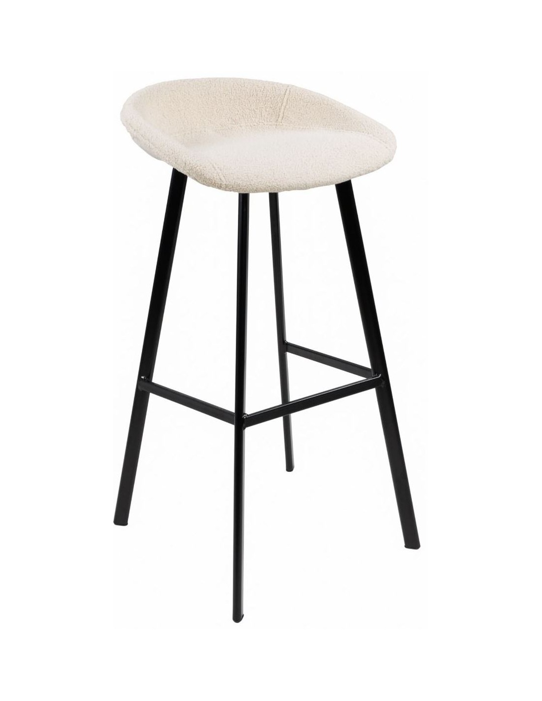 Barstol udført i et design af sortlakeret metal og cremefarvet teddy polyester. Stolen måler 87 cm i højden over ryggen og 80 cm i siddehøjde.