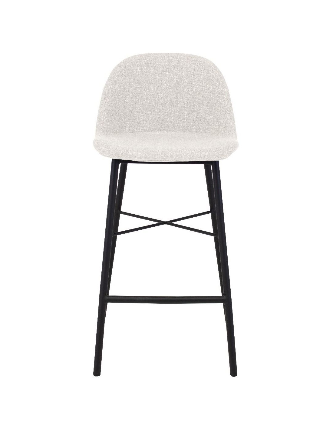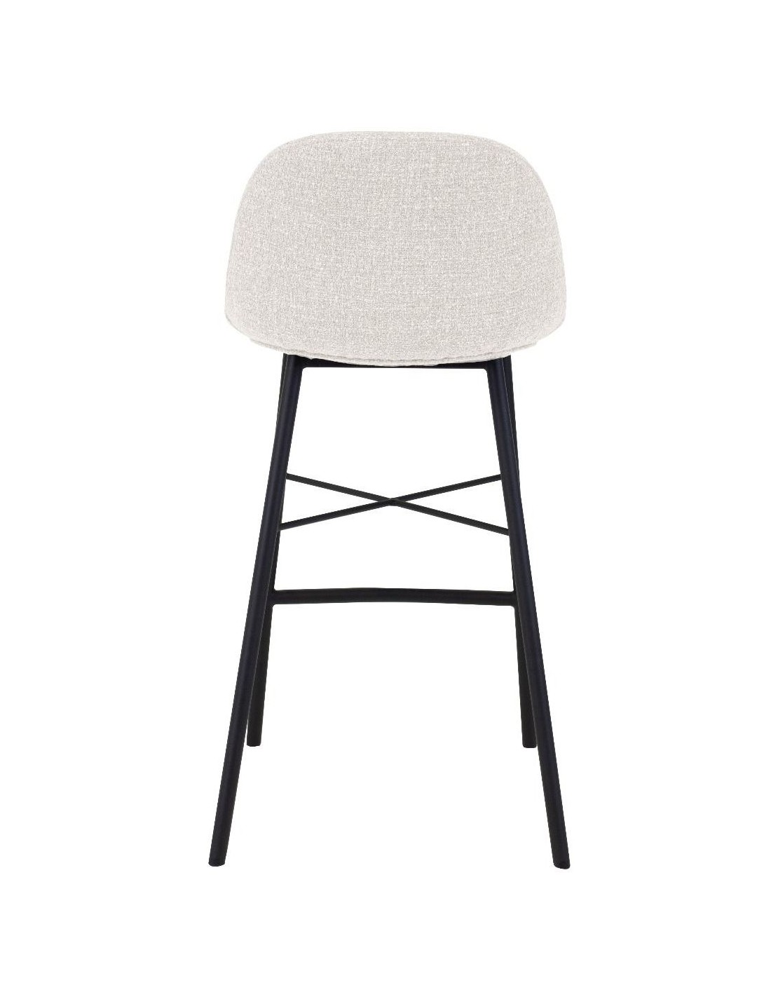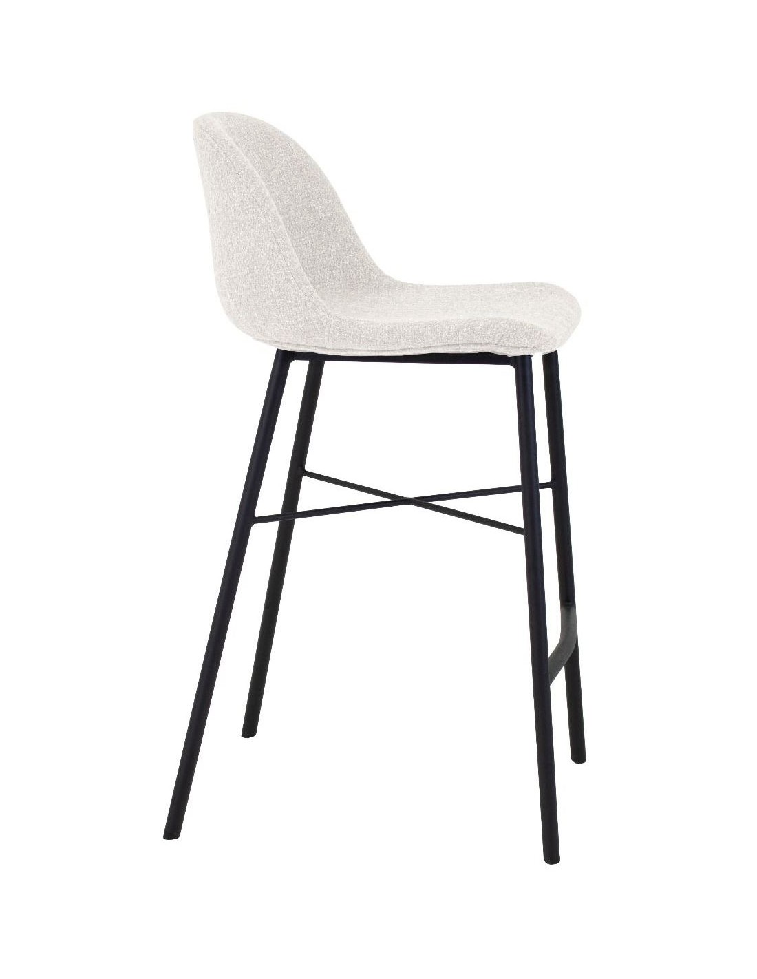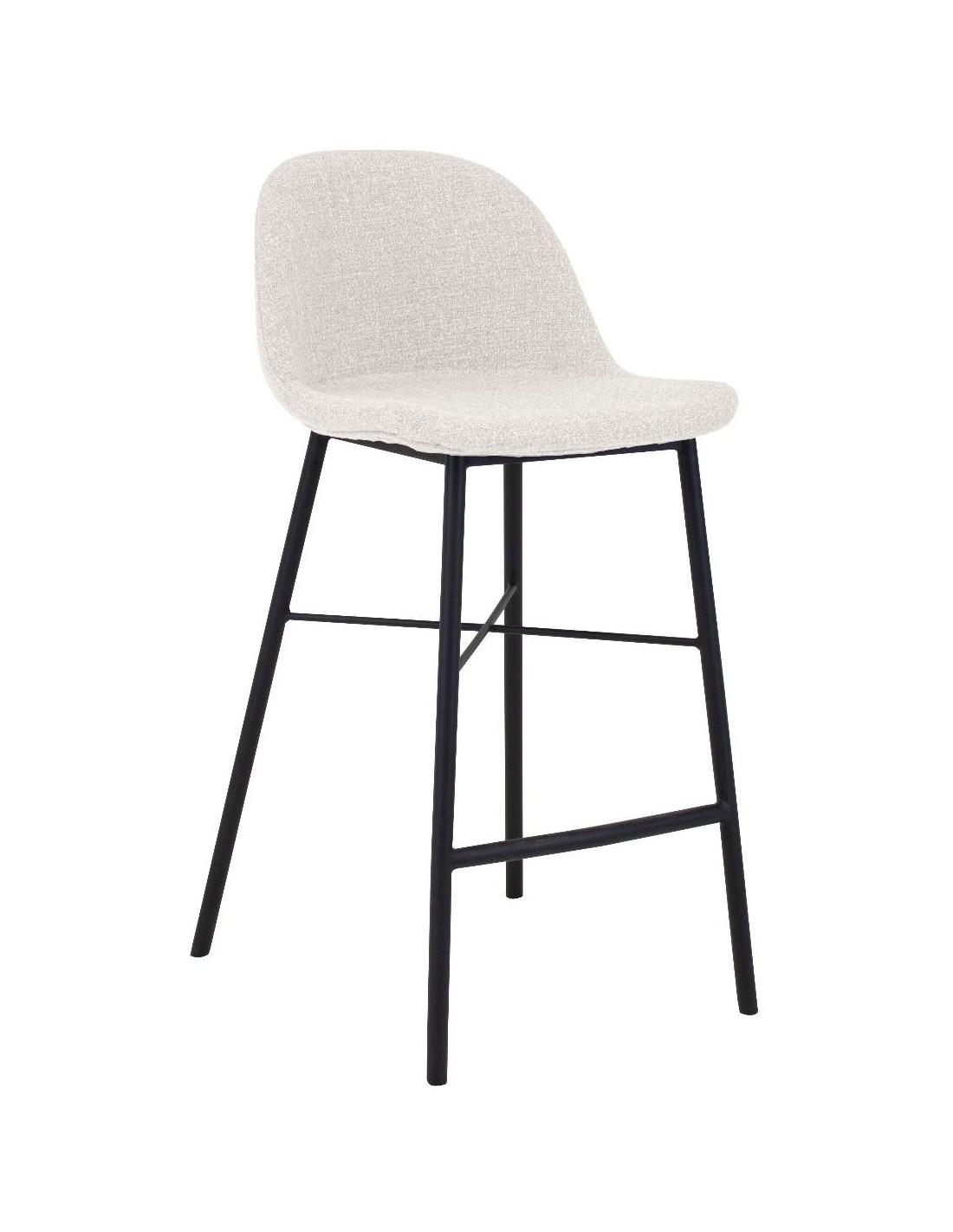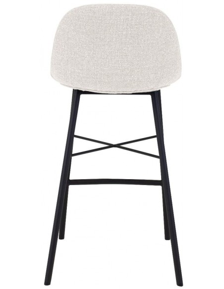 Barstol udført i et design af sortlakeret metal og rådhvid bomuld. Stolen måler 93 cm i højden over ryggen og 69 cm i siddehøjde.
