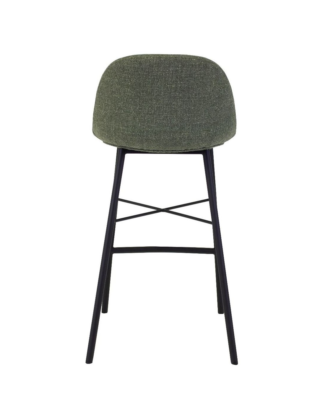 Barstol udført i et design af sortlakeret metal og grøn bomuld. Stolen måler 93 cm i højden over ryggen og 69 cm i siddehøjde.