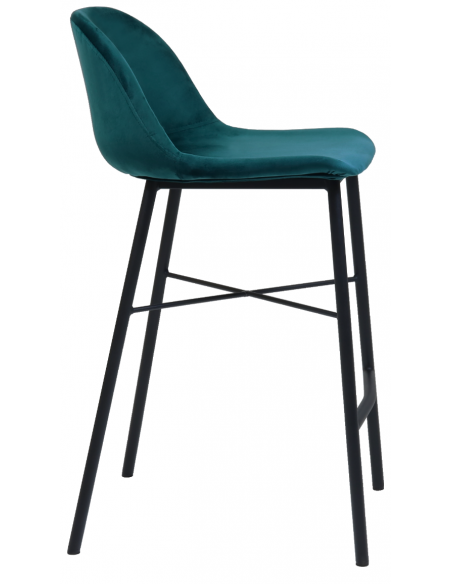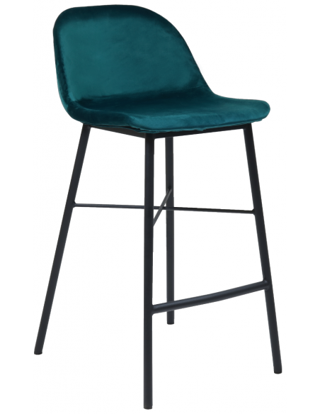 Jeff barstol i velour H93 cm - Sort/Blå
