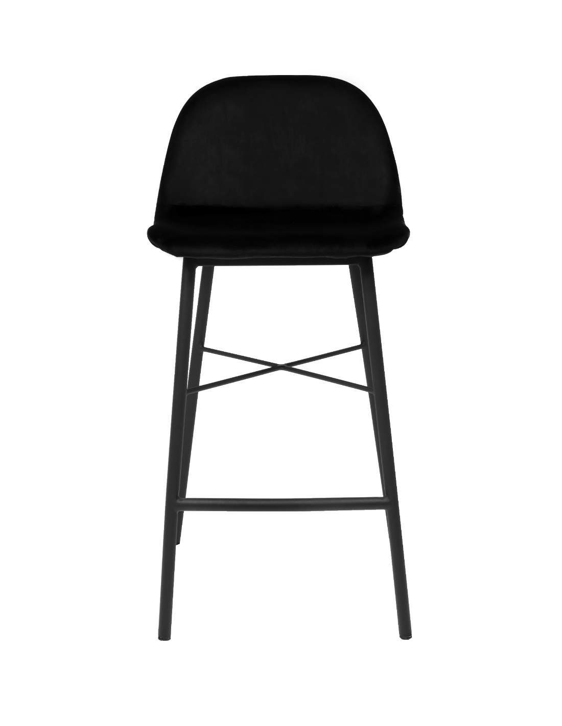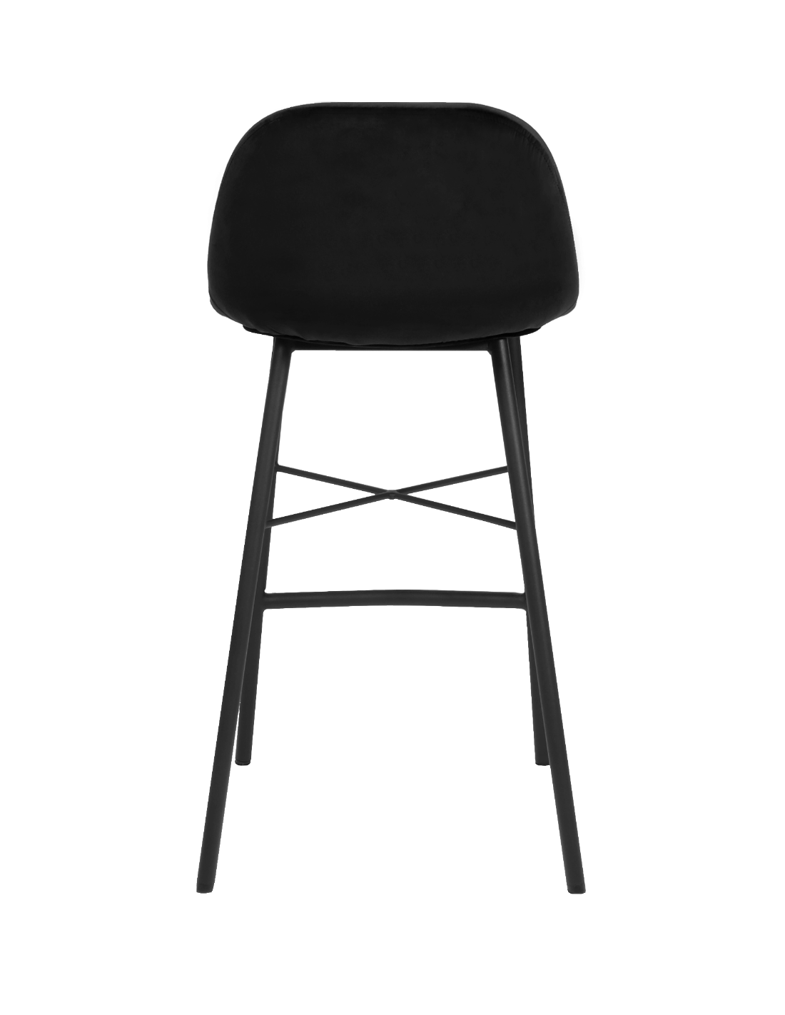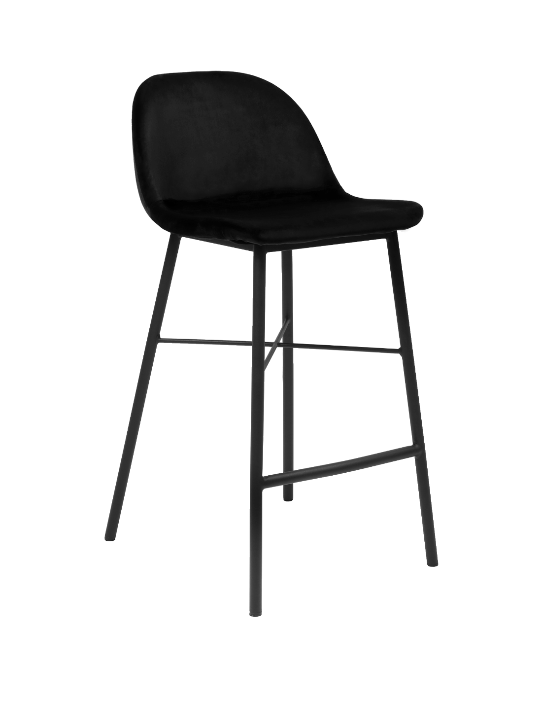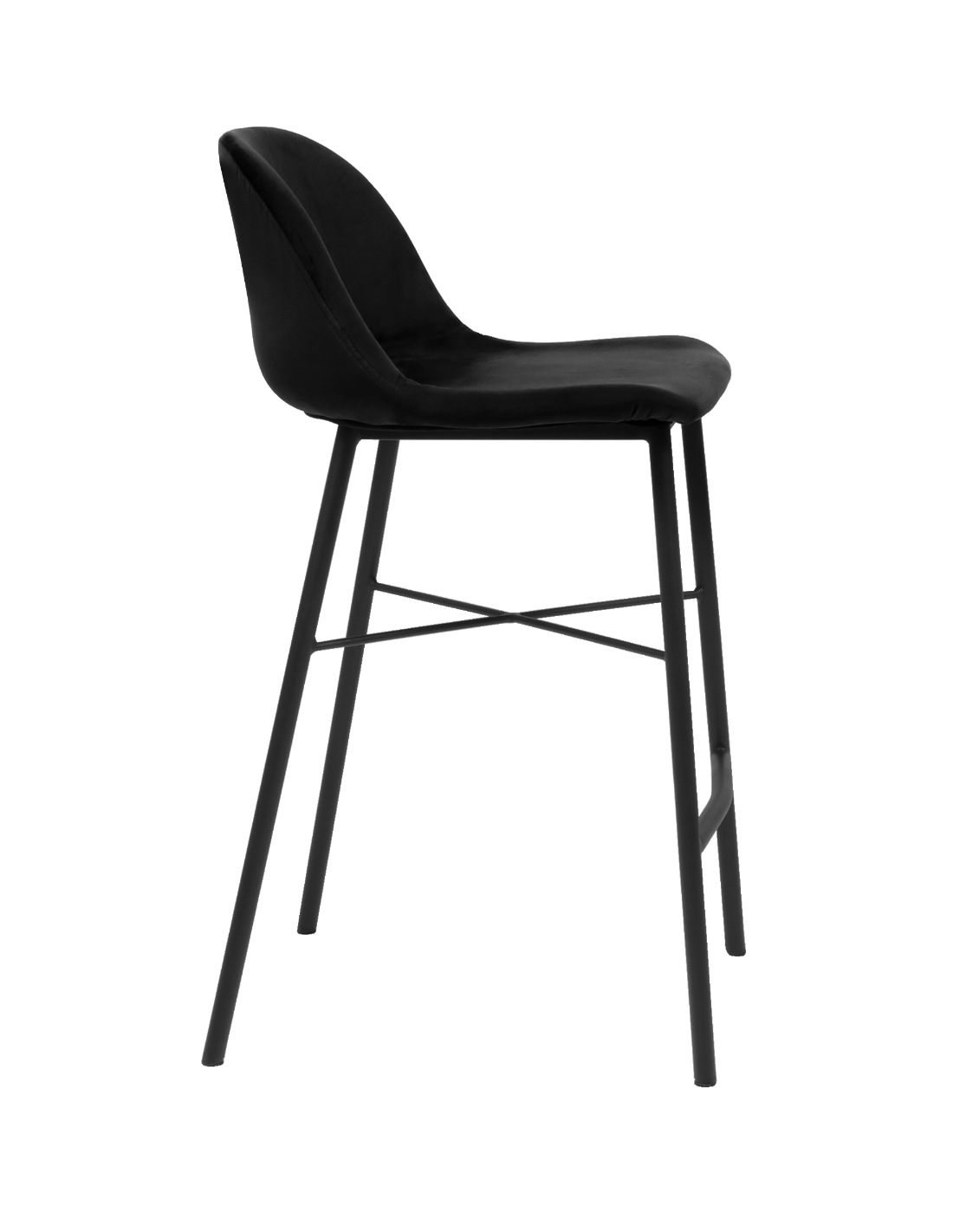 Barstol udført i et design af sortlakeret metal og sort velour. Stolen måler 93 cm i højden over ryggen og 69 cm i siddehøjde.