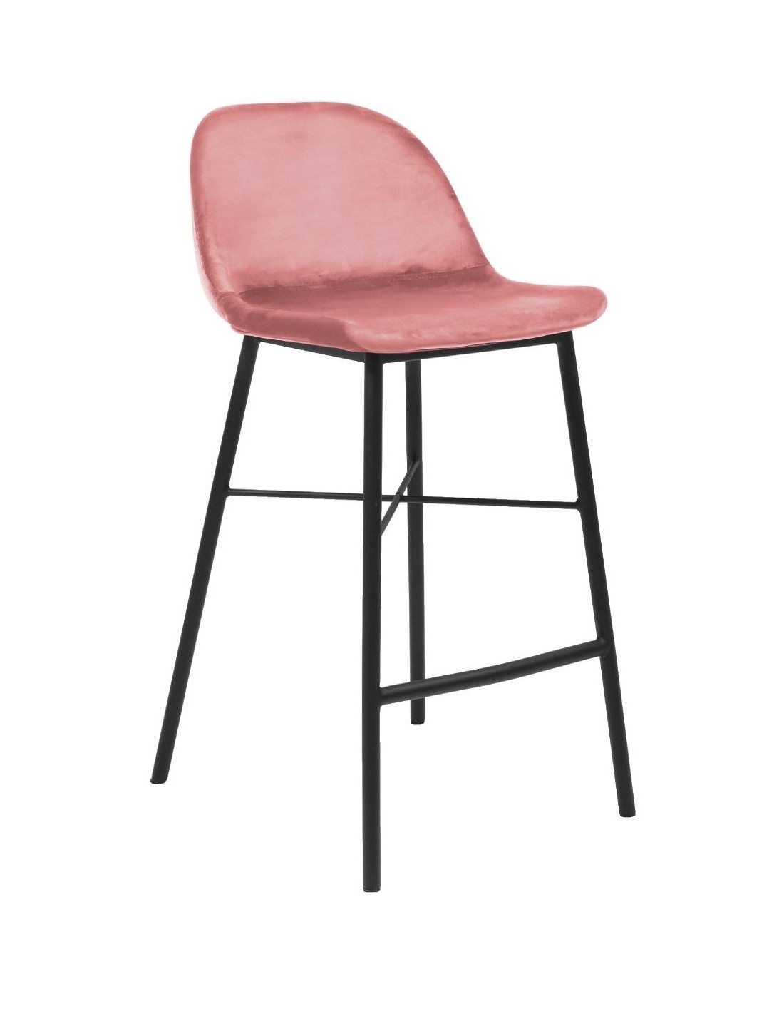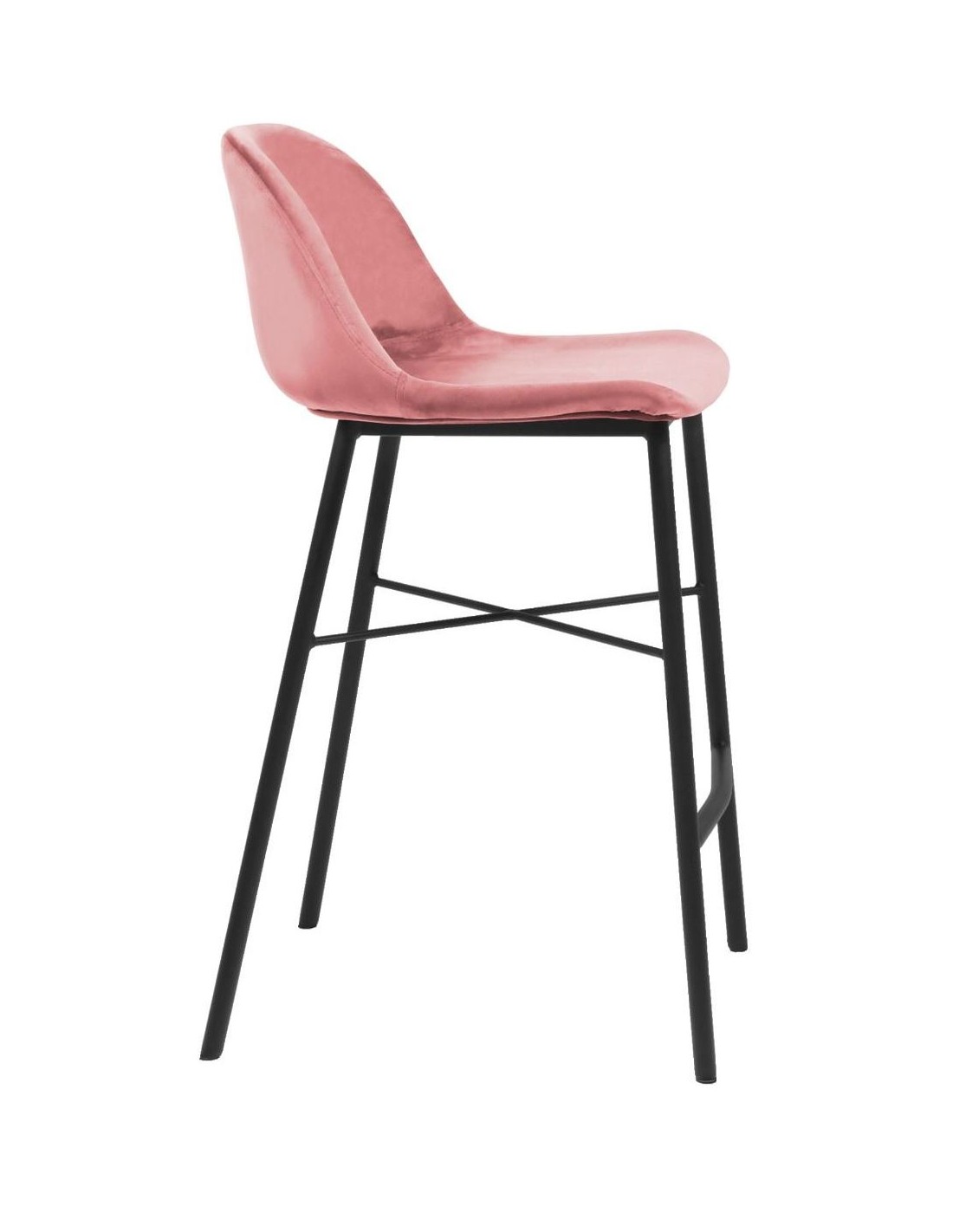 Barstol udført i et design af sortlakeret metal og rosa velour. Stolen måler 93 cm i højden over ryggen og 69 cm i siddehøjde.