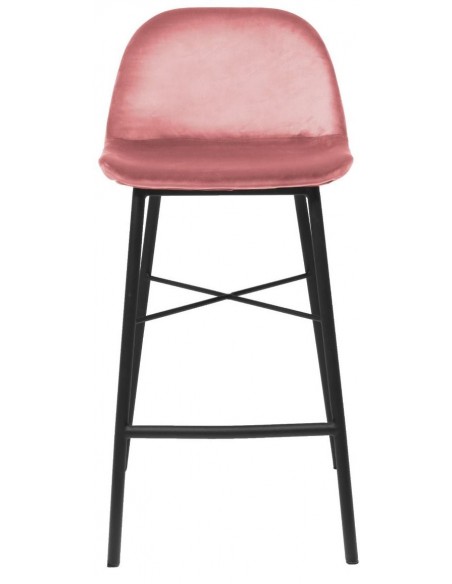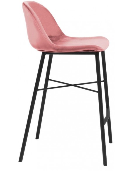 Jeff barstol i velour H93 cm - Sort/Rosa