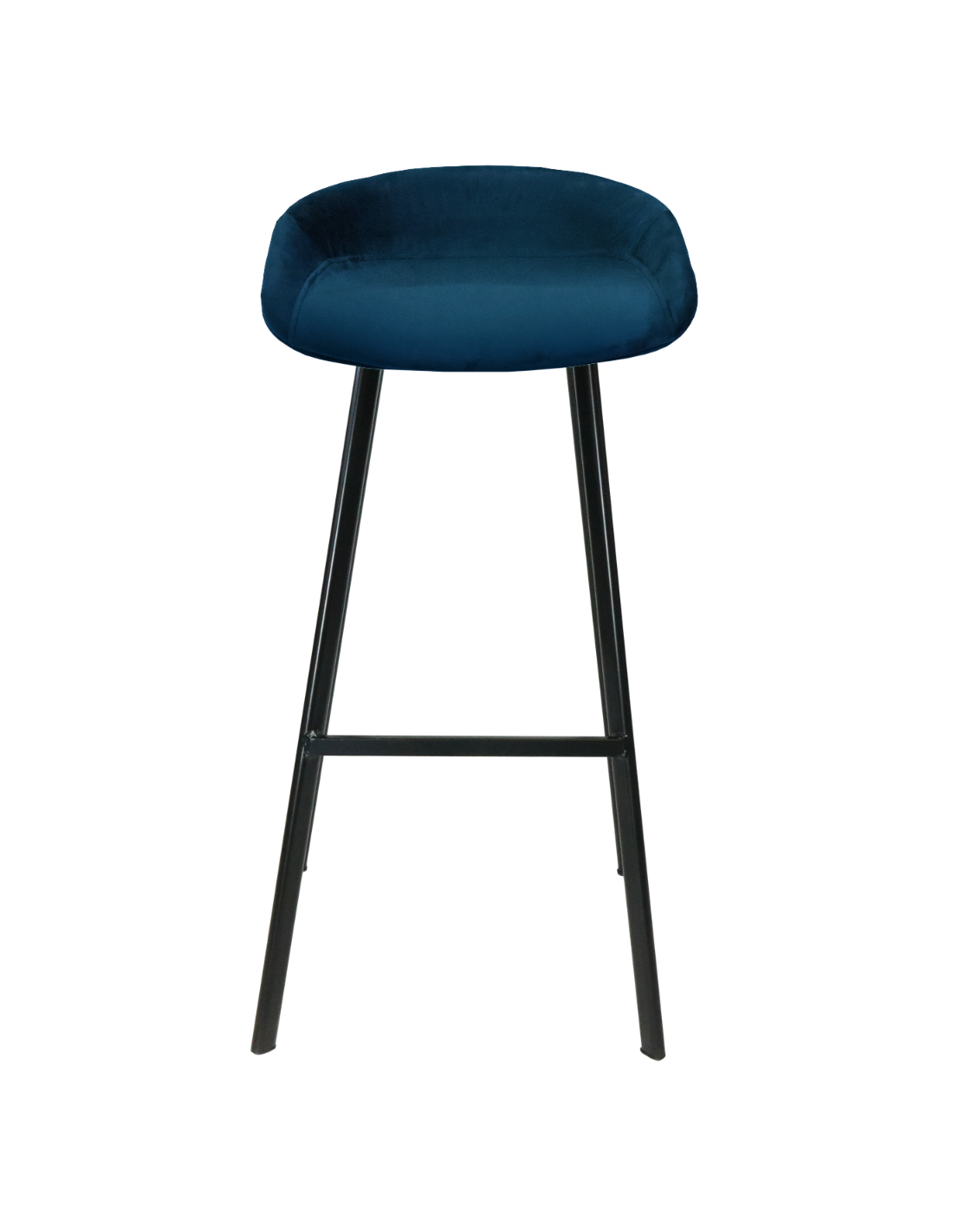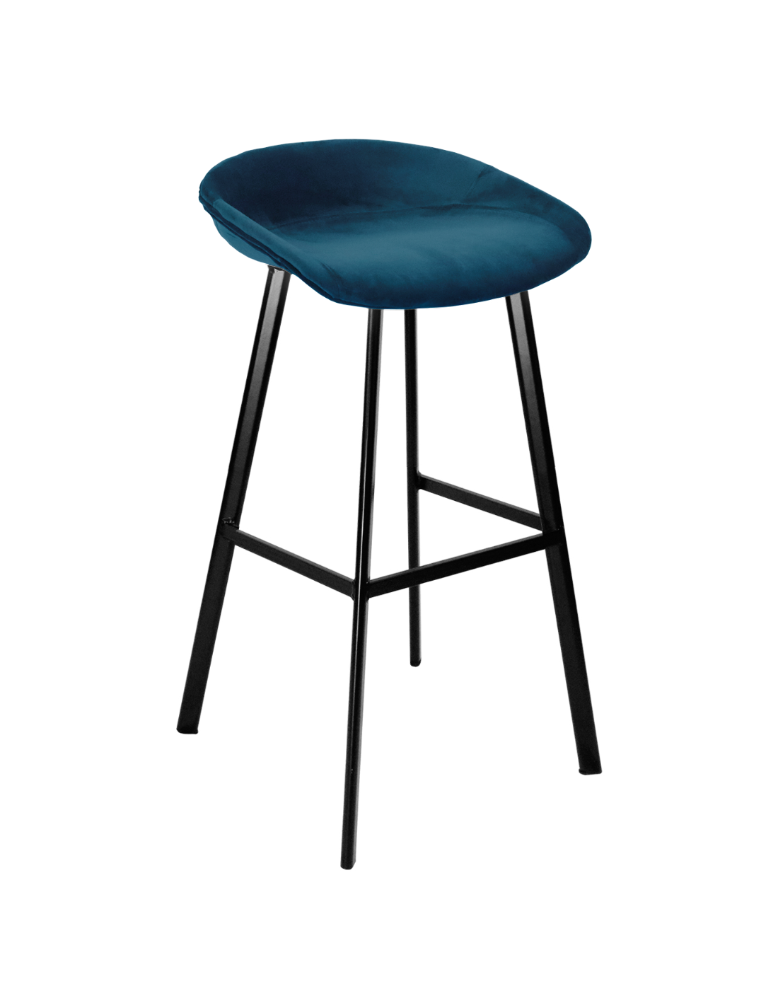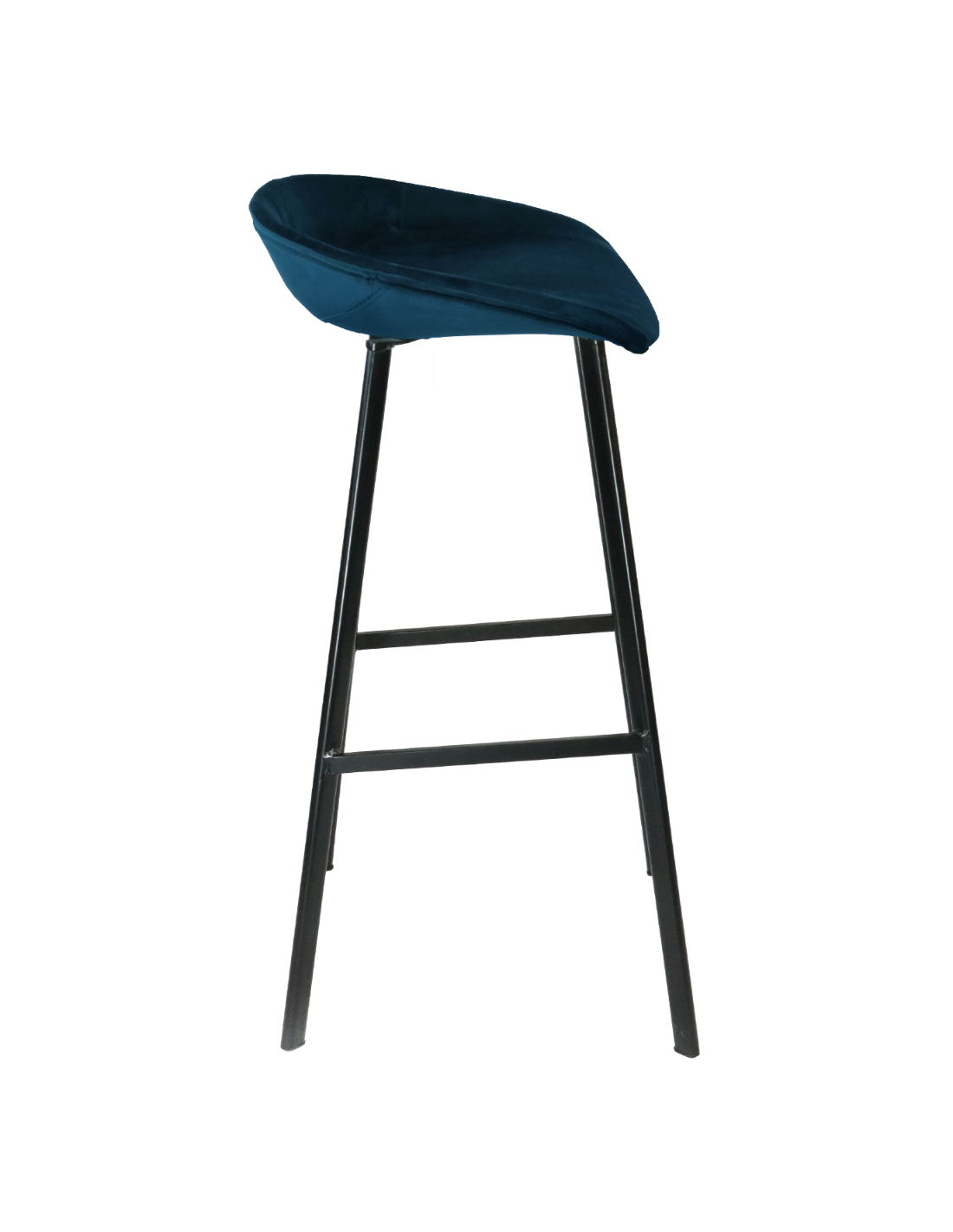 Barstol udført i et design af sortlakeret metal og mørkeblå velour. Stolen måler 78 cm i højden over ryggen og 70 cm i siddehøjde.