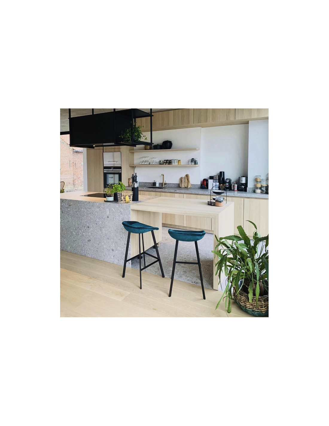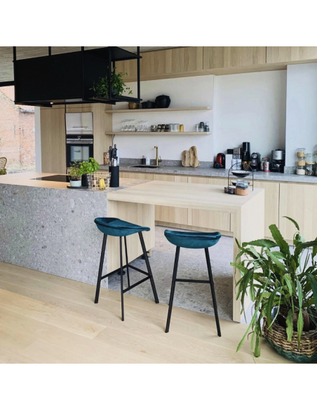 Finn barstol i velour H78 cm - Sort/Mørkeblå