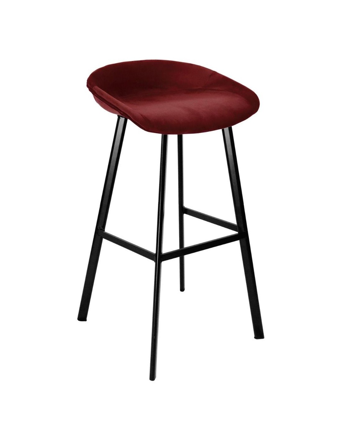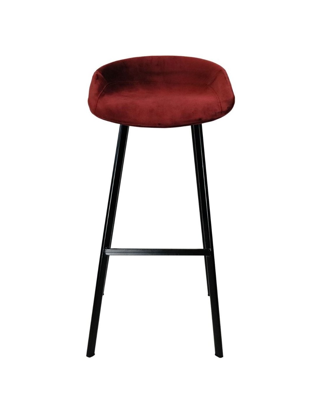 Barstol udført i et design af sortlakeret metal og mørkerød velour. Stolen måler 78 cm i højden over ryggen og 70 cm i siddehøjde.
