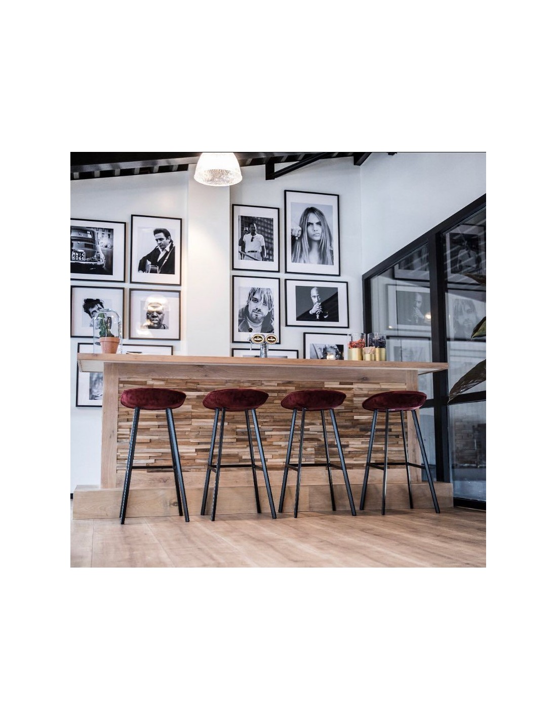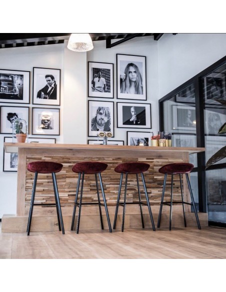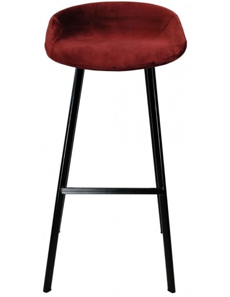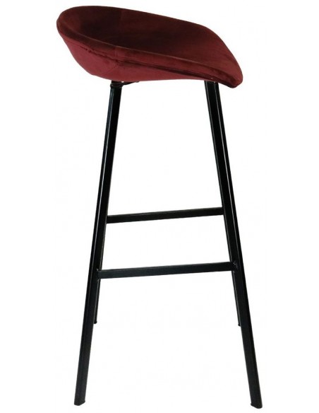 Finn barstol i velour H78 cm - Sort/Mørkerød