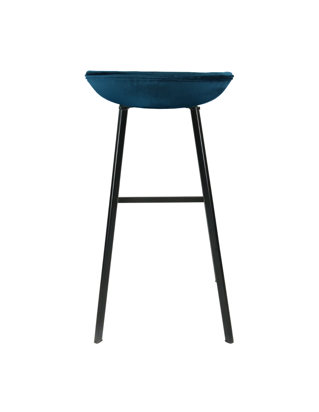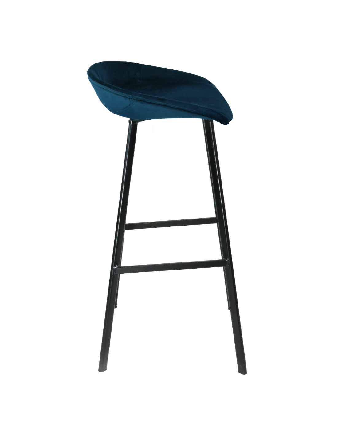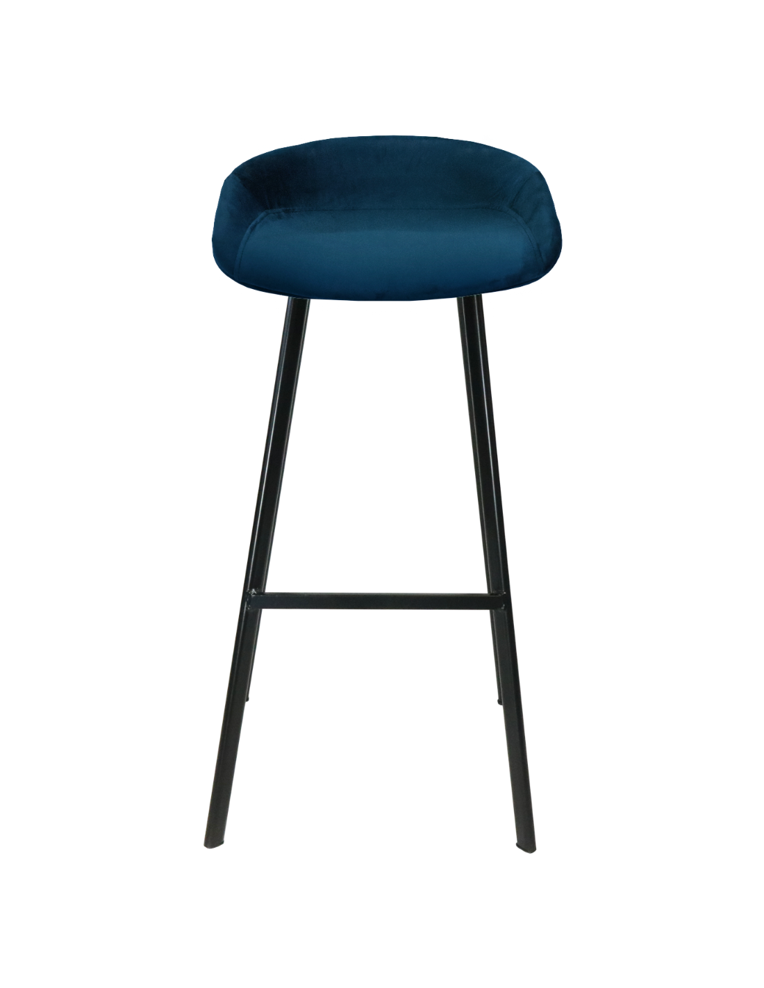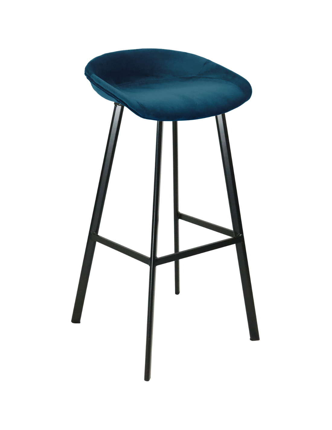 Barstol udført i et design af sortlakeret metal og mørkeblå velour. Stolen måler 87 cm i højden over ryggen og 80 cm i siddehøjde.