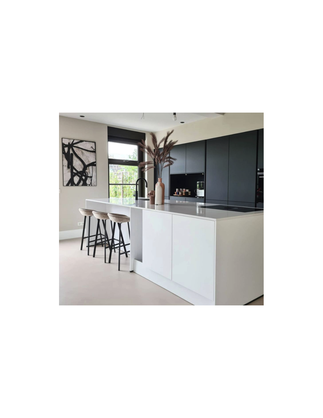 Barstol udført i et design af sortlakeret metal og champagne farvet velour. Stolen måler 87 cm i højden over ryggen og 80 cm i siddehøjde.