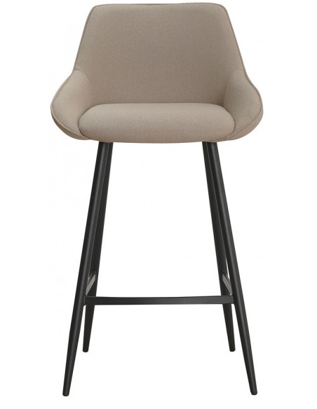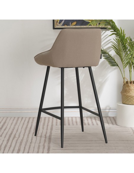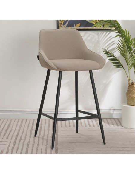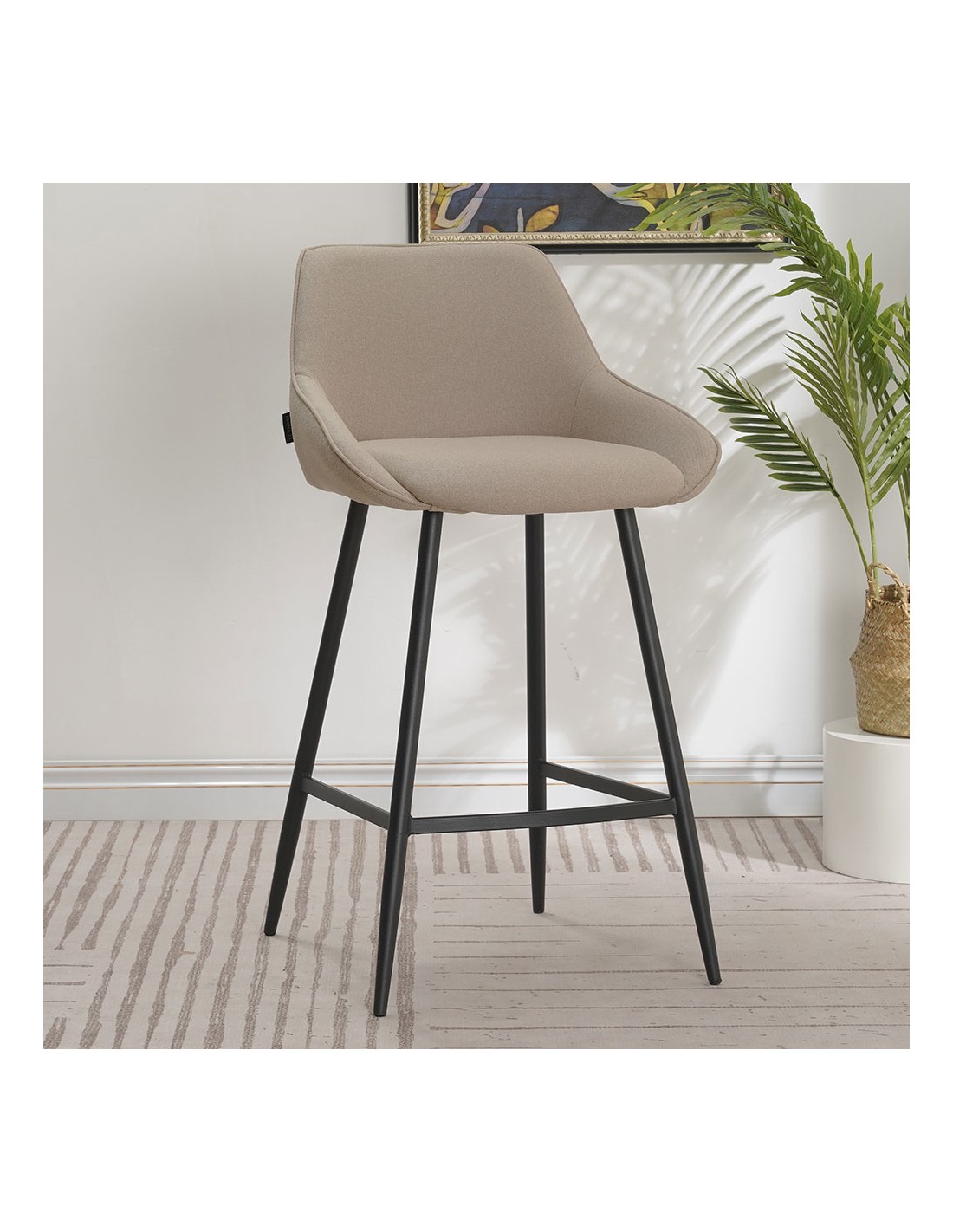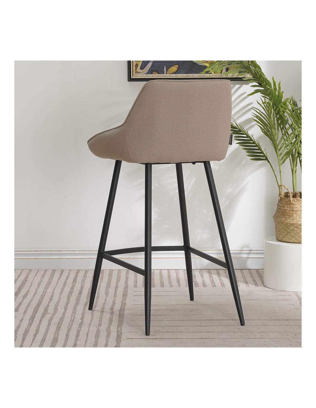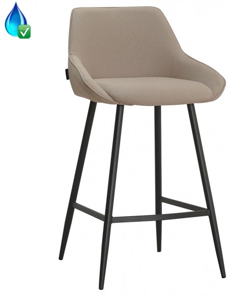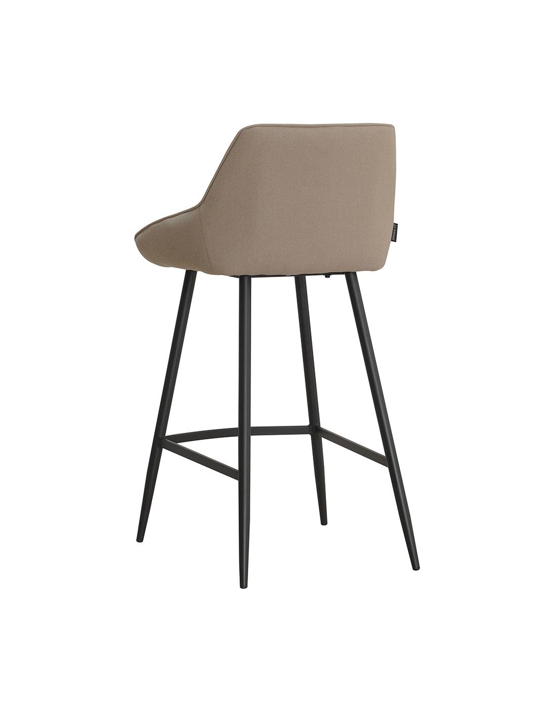 Lova barstol udført i et moderne design, fremstillet med sæde i taupefarvet genanvendt polyester og ben i sortlakeret metal. Barstolen måler 93 cm i højden over ryggen og med siddehøjde på 68 cm. Tekstilen er vandafvisende og med martindale 50.000.