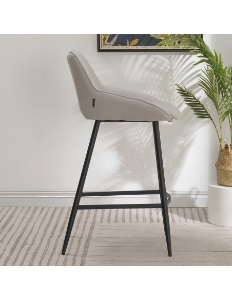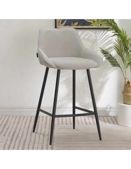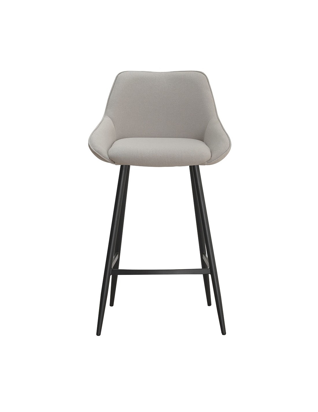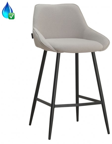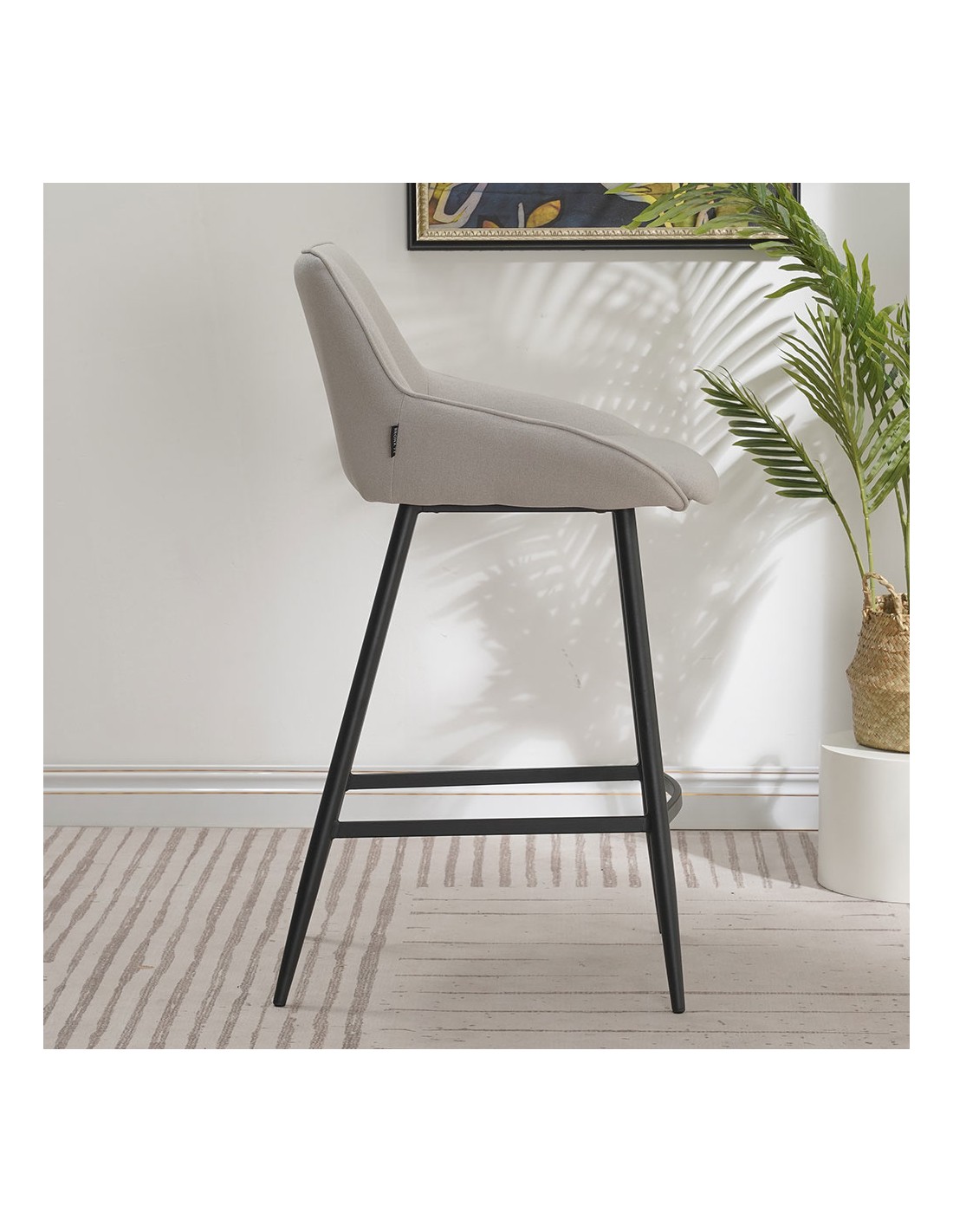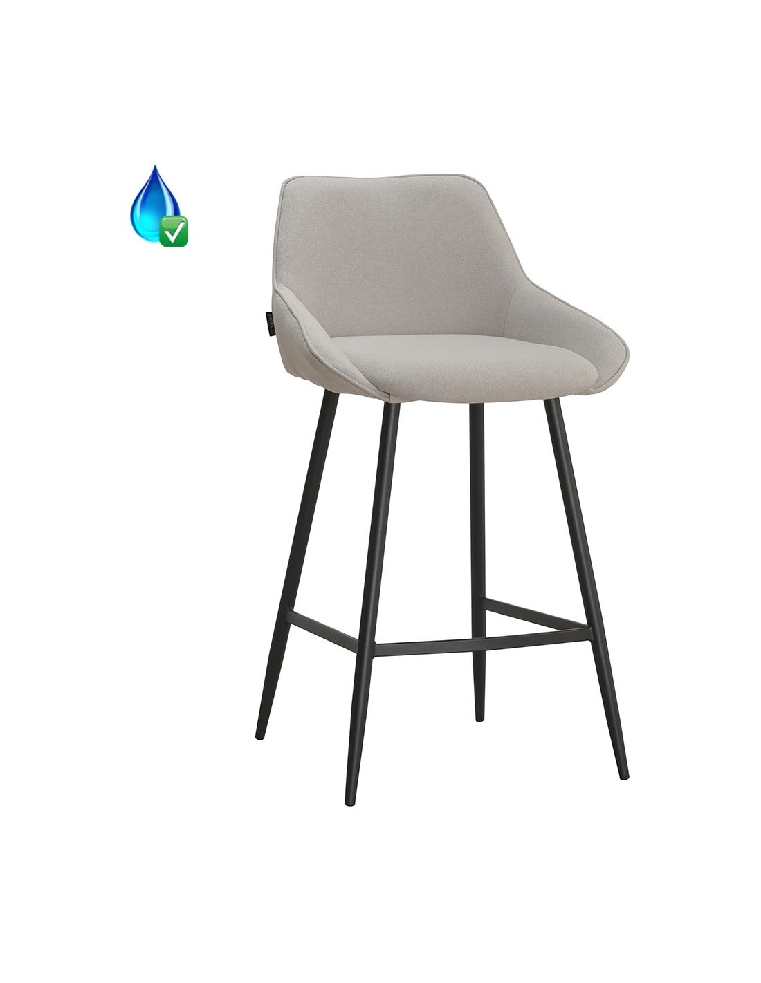 Lova barstol udført i et moderne design, fremstillet med sæde i grå genanvendt polyester og ben i sortlakeret metal. Barstolen måler 93 cm i højden over ryggen og med siddehøjde på 68 cm. Tekstilen er vandafvisende og med martindale 50.000.