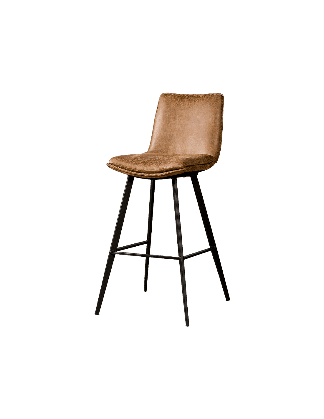 Barstol udført i et industrielt design af vintage cognac microfiber og stel i sortlakeret metal. Stolen måler 105 cm i højden over ryggen og 43 cm i bredden og er polstret med højkvalitets skum.