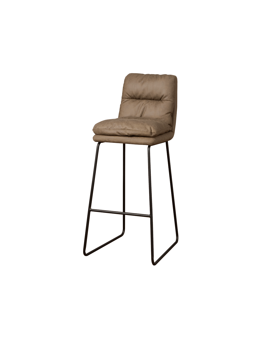 Barstol udført i et industrielt design af vintage taupe microfiber og stel i sortlakeret metal. Stolen måler 110 cm i højden over ryggen og 48 cm i bredden og er polstret med højkvalitets skum.