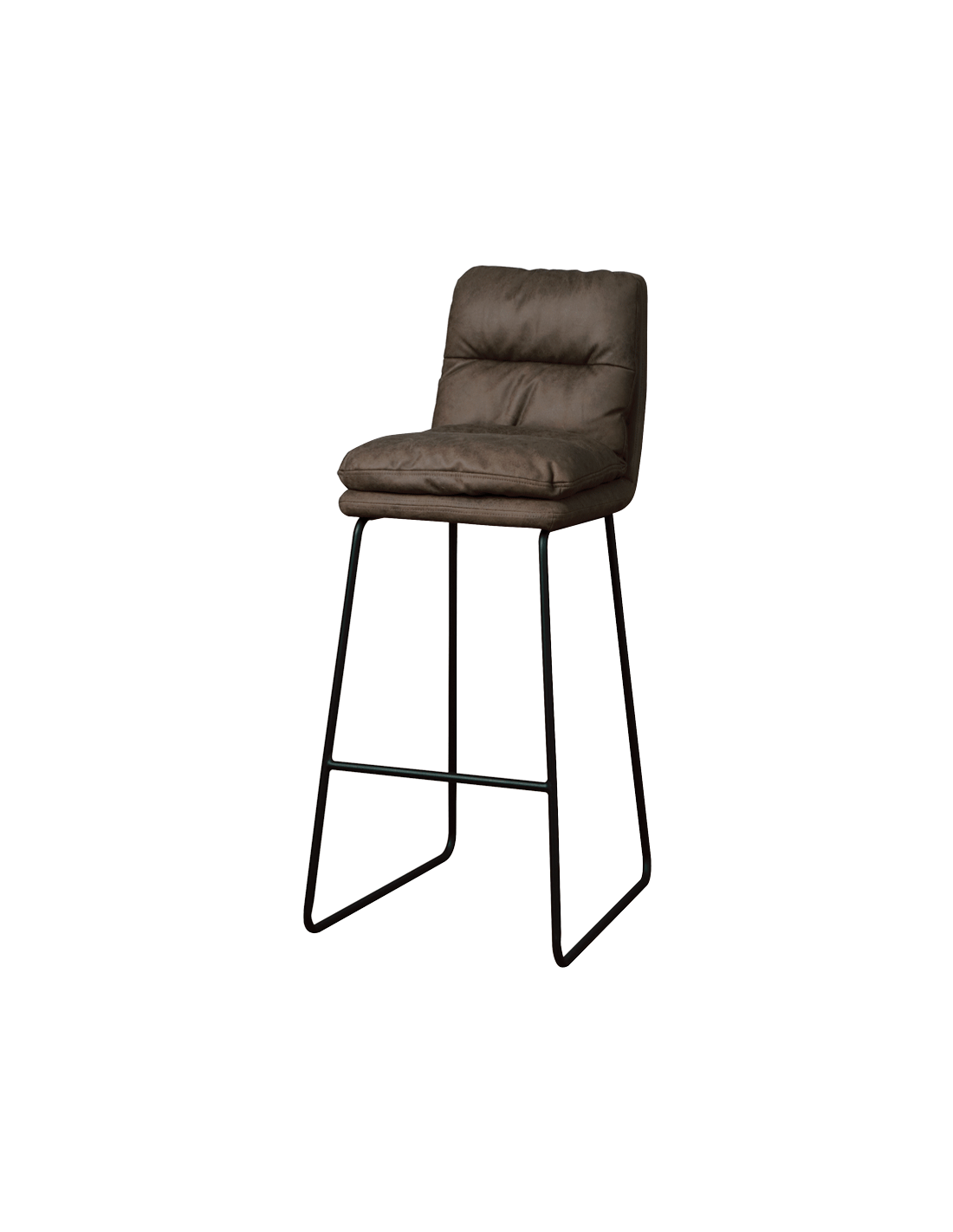 Barstol udført i et industrielt design af vintage antracit microfiber og stel i sortlakeret metal. Stolen måler 110 cm i højden over ryggen og 48 cm i bredden og er polstret med højkvalitets skum.