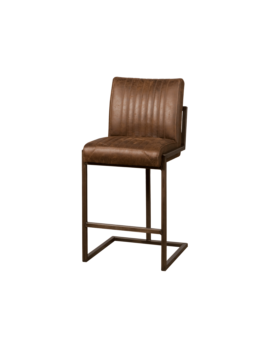 Barstol udført i et industrielt design af vintage mørkebrun microfiber og stel i antik metalgrå lakeret metal. Stolen måler 101 cm i højden over ryggen og 50 cm i bredden og er polstret med højkvalitets skum.