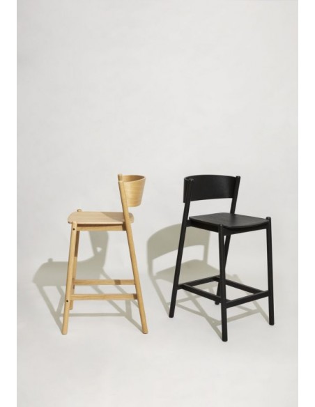 Hübsch Oblique barstol i egetræ og egetræsfinér H103 cm - Sort