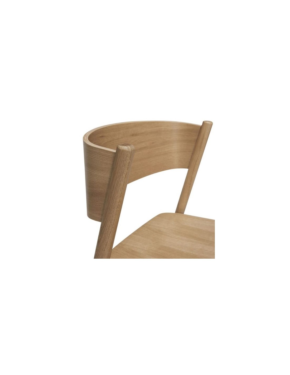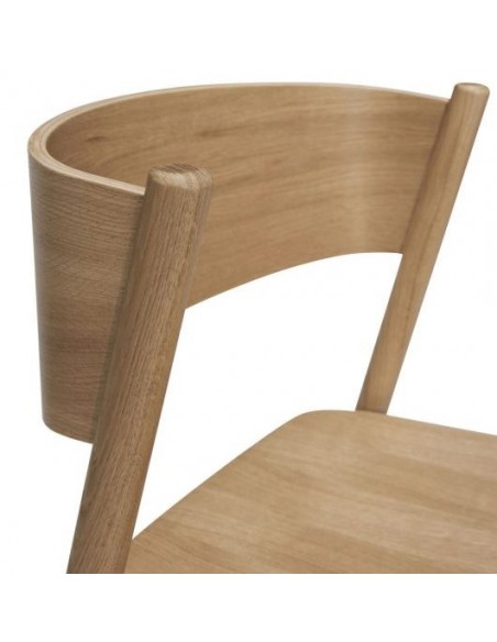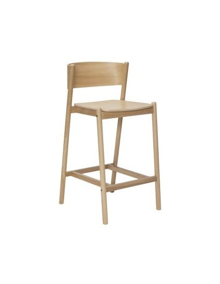 Hübsch Oblique barstol udført i et design af egetræ og egetræsfinér. Stolen måler 103 cm i højden over ryggen og 50 x 55 cm i bredde og dybde. Siddehøjden er 75 cm.