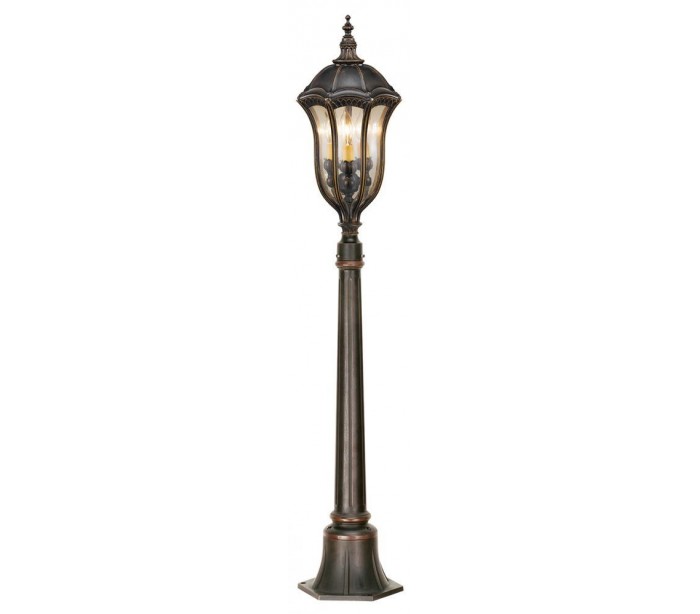 Baton Rouge havelampe i et rustikt design fra amerikanske Feiss. Lampen leveres til europæisk standard til 3 x E14 lyskilder og måler 131,7 cm i højden.