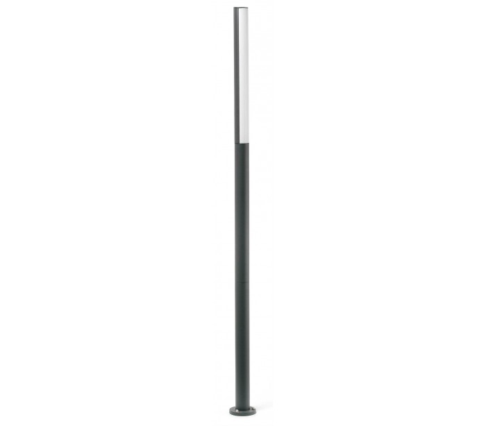 Beret havelampe i et moderne design, fremstillet i mørkegrå lakeret aluminium og skærm i hvid akryl. Lampen måler 180 cm i højden og anvender 1 x SMD LED lyskilde på 16W (Inkl.). Lampen bør monteres på fast undergrund eller betonstøbning/flise.