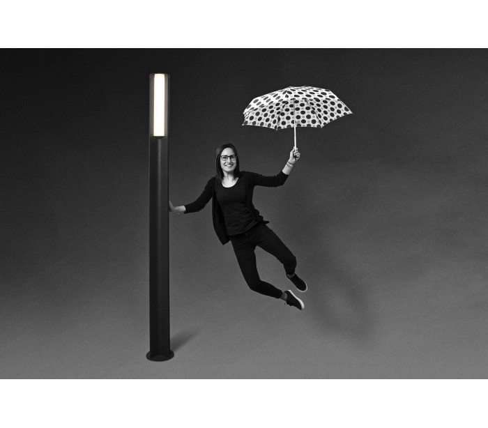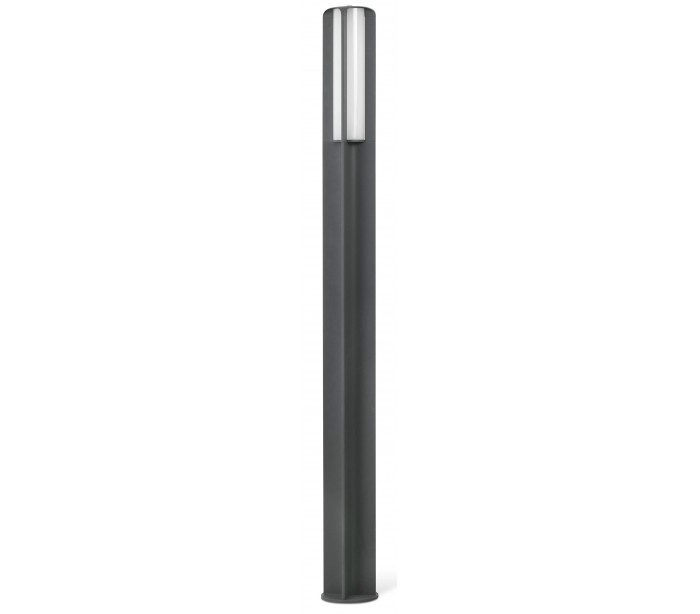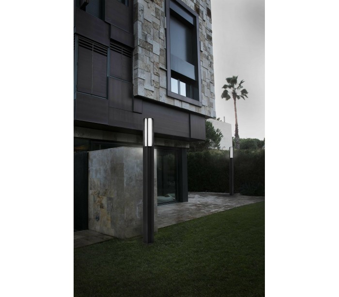 Farola havelampe i et moderne design, fremstillet i mørkegrå lakeret aluminium og skærm i hvid akryl. Lampen måler 250 cm i højden og anvender 4 x SMD LED lyskilder på 10W (Inkl.). Lampen bør monteres på fast undergrund eller betonstøbning/flise. Lampen belyser 360° omkring sig.