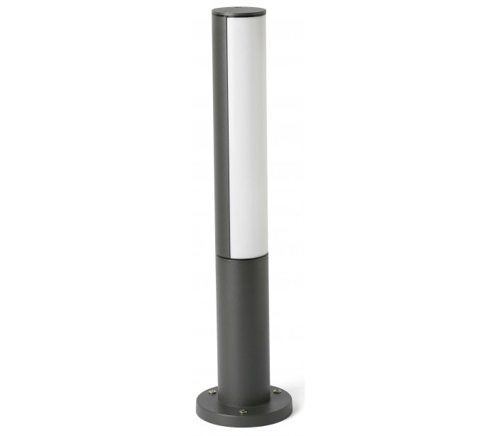 Beret havelampe i et moderne design, fremstillet i mørkegrå lakeret aluminium og skærm i hvid akryl. Lampen måler 50 cm i højden og anvender 1 x SMD LED lyskilde på 8W (Inkl.). Lampen bør monteres på fast undergrund eller betonstøbning/flise.