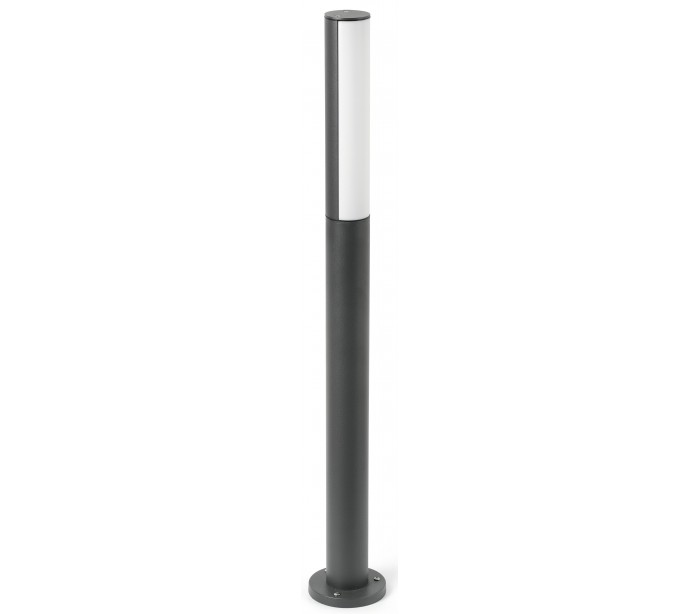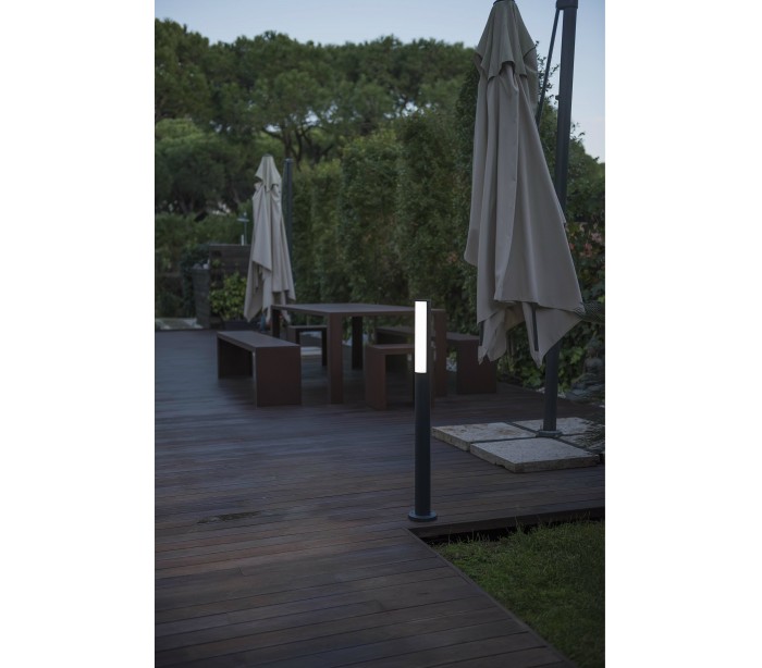 Beret havelampe i et moderne design, fremstillet i mørkegrå lakeret aluminium og skærm i hvid akryl. Lampen måler 90 cm i højden og anvender 1 x SMD LED lyskilde på 8W (Inkl.). Lampen bør monteres på fast undergrund eller betonstøbning/flise.
