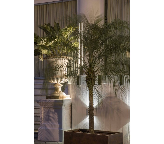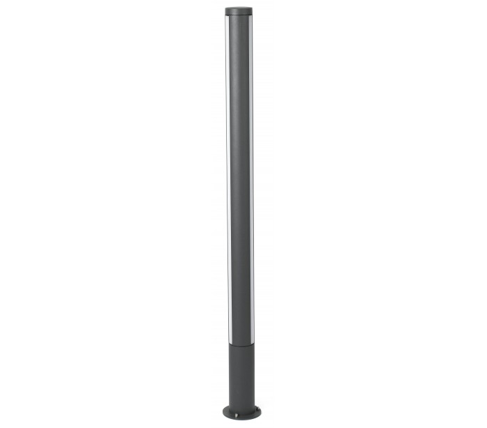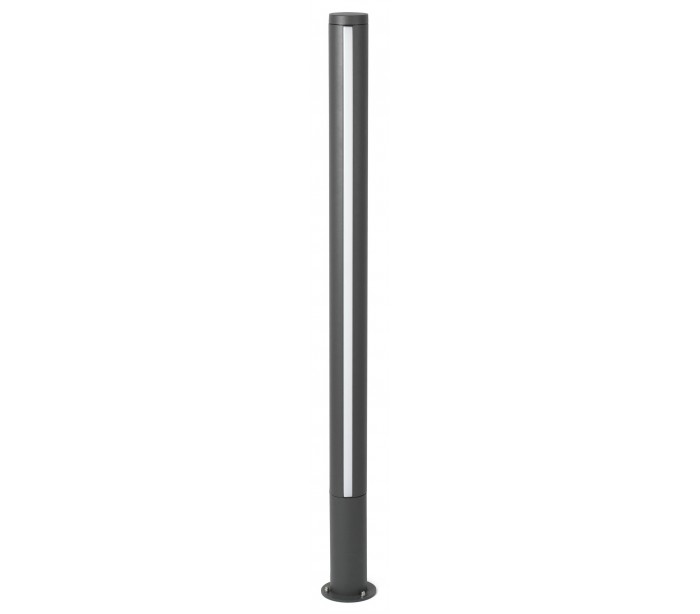 Grop havelampe i et moderne design, fremstillet i mørkegrå lakeret aluminium og skærm i hvid polycarbonat. Lampen måler 125 cm i højden og anvender 1 x SMD LED lyskilde på 18W (Inkl.). Lampen bør monteres på fast undergrund eller betonstøbning/flise.