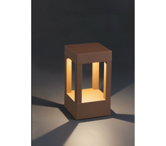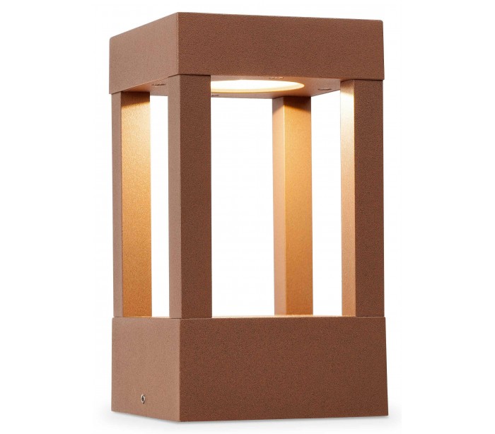 Agra halvmurslampe i et moderne design, fremstillet i rustlakeret aluminium og skærm i klart glas. Lampen måler 20 cm i højden og anvender 1 x COB LED lyskilde på 10W (Inkl.). Lampen bør monteres på fast undergrund eller betonstøbning/flise.